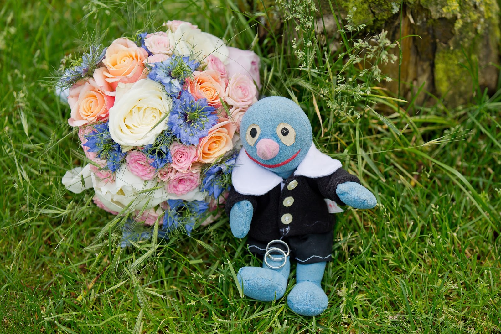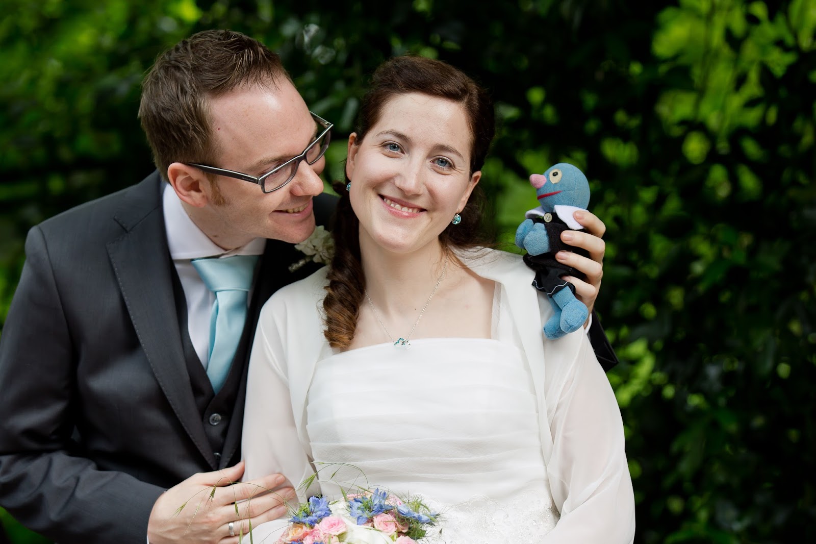 Nach dem Standesamt, der Reis-Attacke und der kleinen Live-Performance haben wir dann Fotos gemacht: Mit Eltern, Geschwistern und Trauzeugen. Schließlich dann auch endlich nur zu dritt. Davon gibt es auch jede Menge tolle Fotos. Aus irgendeinem Grund wollten Schatzi-Moppel allerdings auch Fotos ohne mich machen. Das verstehe ich zwar bis heute nicht, aber ich durfte mich bei der Fotografin in einer gemütlichen Außentasche an ihrem Kleid ausruhen. Das war zwischendurch auch mal ganz in Ordnung. Nach den kleinen Ausruheinheiten konnte ich gleich noch etwas breiter lächeln. Und insgesamt war die Fotoquote auf der Hochzeit wirklich beachtlich. Man sollte öfter heiraten. Wobei, nein, die beiden möchte ich jetzt behalten. Dann muss es halt andere Fotoevents geben. Mir wird da sicher etwas einfallen.