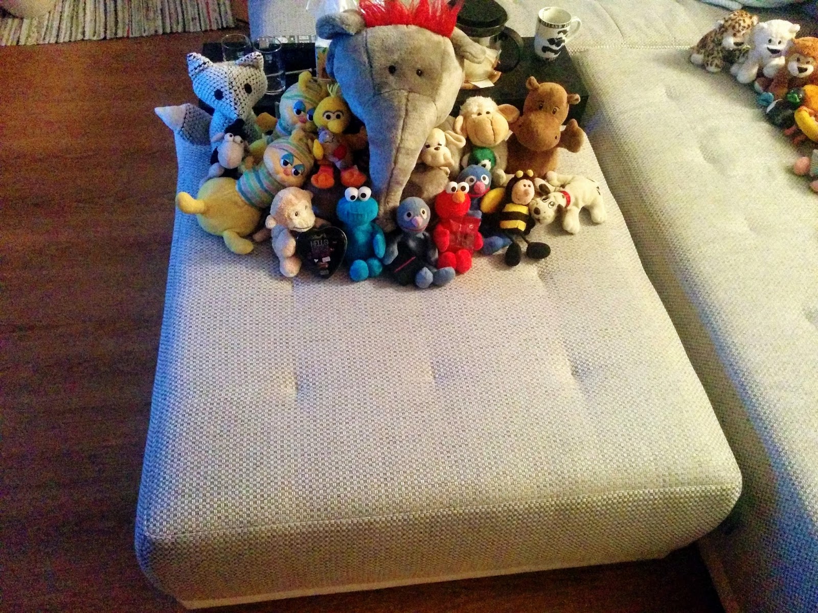 Wie schon erwähnt, musste ich ein Kuscheltier-Embargo verhängen. Versteht mich nicht falsch. Am liebsten würde ich sie alle retten und auf meiner Couch haben. Aber wenn man zu viele Freunde hat, wird es irgendwann unübersichtlich und man kann nicht mehr jedem so viel Aufmerksamkeit schenken, wie er es verdient hätte. Das ist eine Schwierigkeit, der nur begegnet werden konnte, in dem ein Kuscheltier-Embargo verhängt wurde.