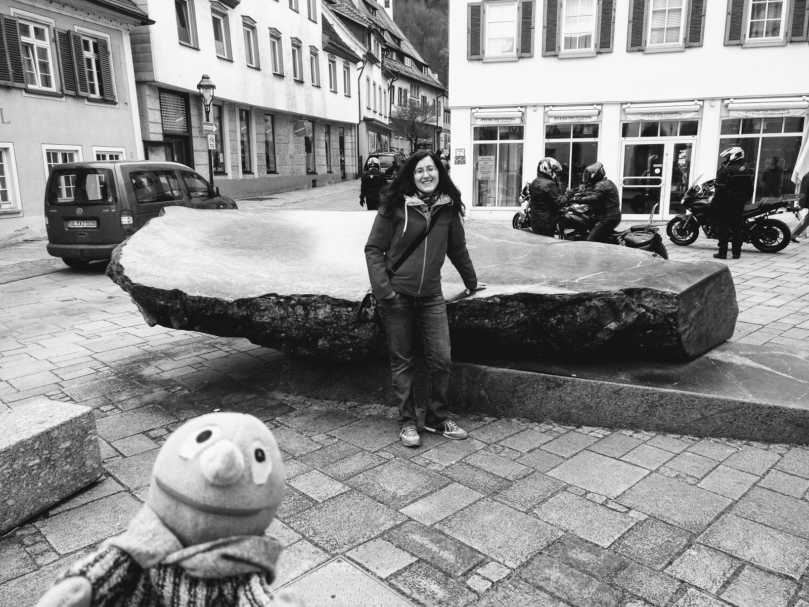 In Bad Urach wollten wir eigentlich zum Wasserfall. Nachdem wir einen Parkplatz gefunden hatten, haben wir uns in die Richtung aufgemacht, aber schon nach kurzem Fußweg beschlossen, dass dieser Ausflug auf ein anderes Mal verschoben werden muss, da die Entfernung doch zu weit für den (immer noch ) gebrochenen Zeh vom Schatzi sein würde. Wir sind also umgedreht und nach Hause gefahren.