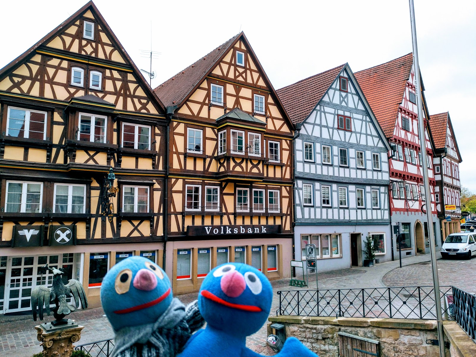 | Hübsche Fachwerkhäuser und hübsche blaue Männchen |