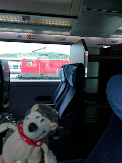 Im Zug hat er sich natürlich erstmal ein wenig umgeschaut, das war ja vollkommen unbekanntes Terrain für ihn. Er fand es aber ganz spannend und hat die Fahrt genossen. Die vorbeirauschende Welt war wirklich beeindruckend für den kleinen Kerl.