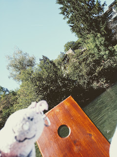 Nach einer knappen Stunde legten wir wieder am Ausgangspunkt an, krabbelten zurück an Land, wo sich mussten Schatzi-Moppel erstmal die Fuße vertreten mussten. Eine Stunde in so einem Kahn führt unweigerlich zu eingeschlafenen Hintern und Beinen.