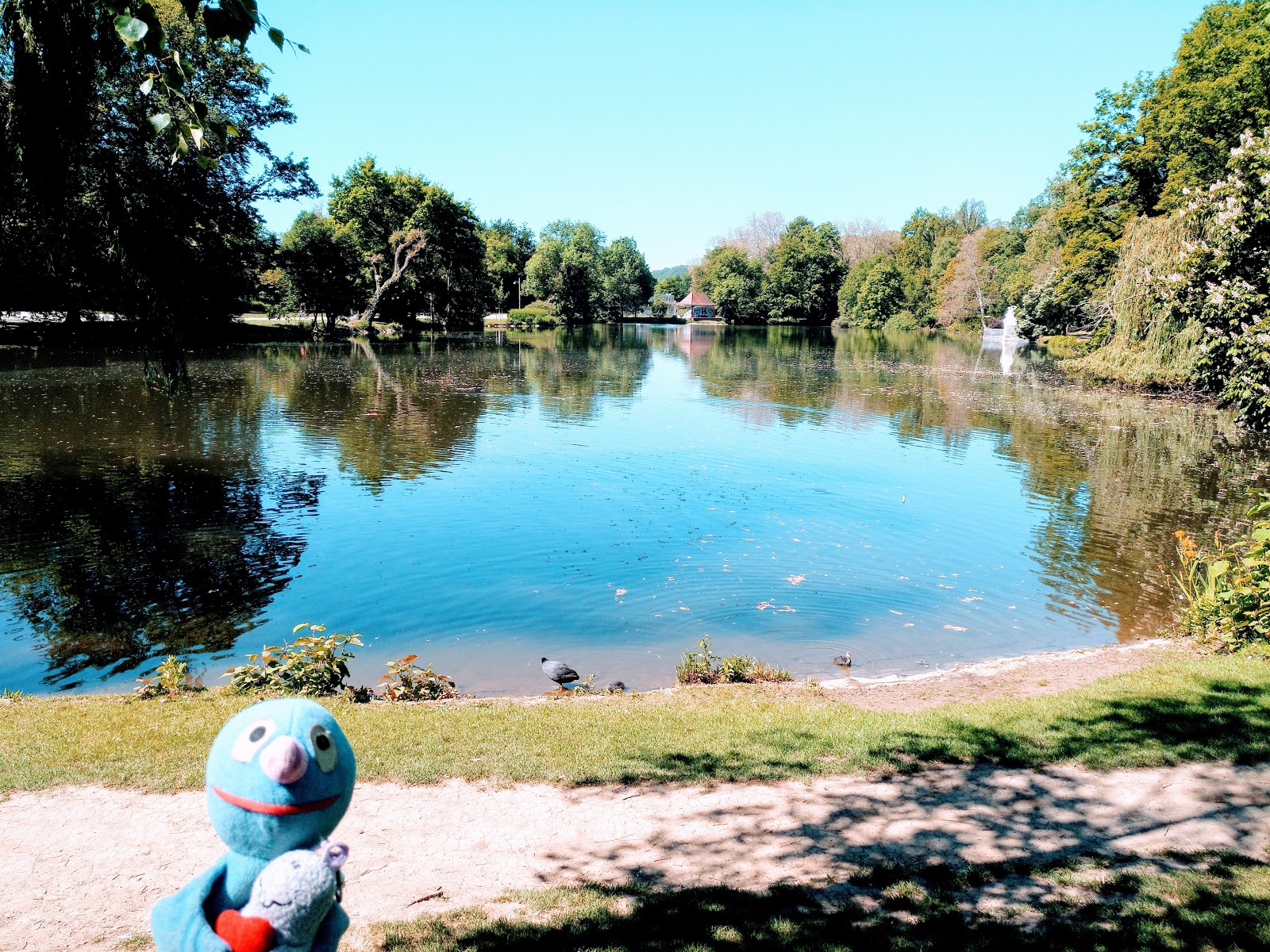 Zunächst begann unsere Reise um kurz nach 10 Uhr mit dem IRE von Stuttgart nach Tübingen. Der Zug fuhr mit einem kurzen Zwischenstopp in Reutlingen bis nach Tübingen durch. Hier hättten wir allerdings fast den Ausstieg verpasst, denn es kam keine Durchsage für den nahenden Halt. Aber wir haben es dann doch noch gemerkt, haben unsere Sachen geschnappt und sind aus dem Zug gehüpft. Am Bahnhof mussten wir uns erstmal kurz orientieren, haben uns dann aber für die richtige Richtung entschieden und landeten schon nach wenigen Metern im Anlagenpark, der einen kleinen See umgab.