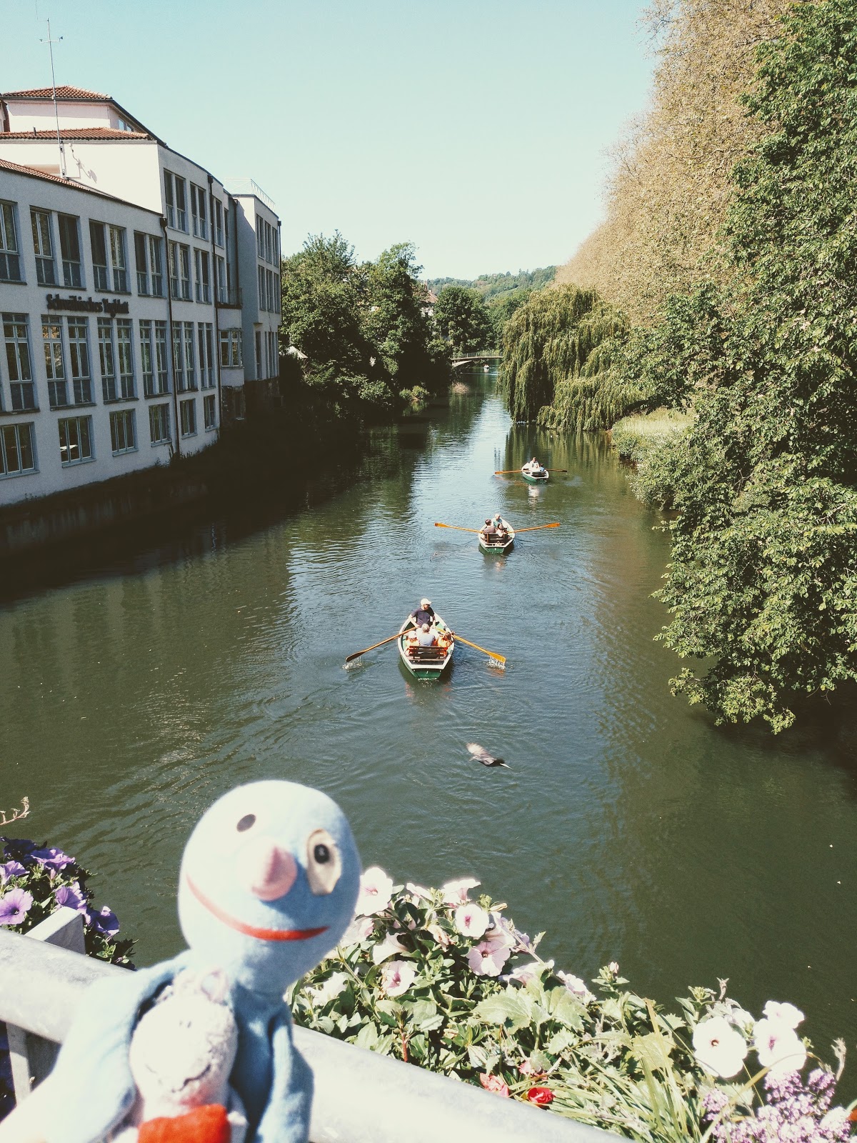 Ein bisschen ungeschickt war, dass die (interessanten) Läden bereits um 16 Uhr schließen sollten und wir für 15 Uhr eine Stocherkahnfahrt gebucht hatten. Davon haben wir uns aber nicht die Laune vermiesen lassen, sondern sind um halb 3 mal nach dem Kahn gucken gegangen.