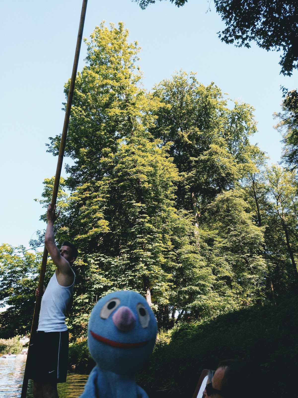 Unser Stocherkahnführer Ari (ein Tübinger Student) schipperte uns gemütlich den Neckar hinauf und nach einer Weile auch wieder hinunter.