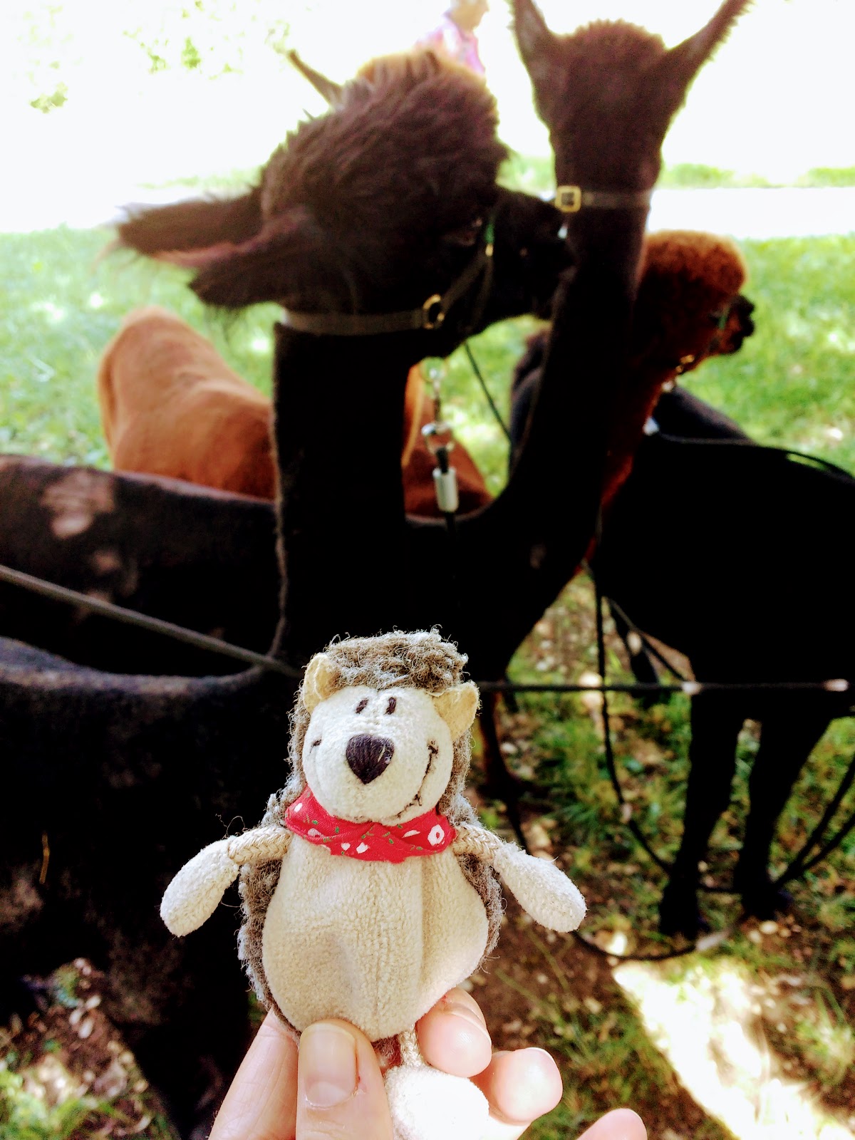Auf dem Weg zur Seifenmanufaktur sind die beiden noch den Alpakas begegnet, die eine andere Gruppe besucht hat. Von diesen lustigen Gesellen war Basti ganz schön angetan.