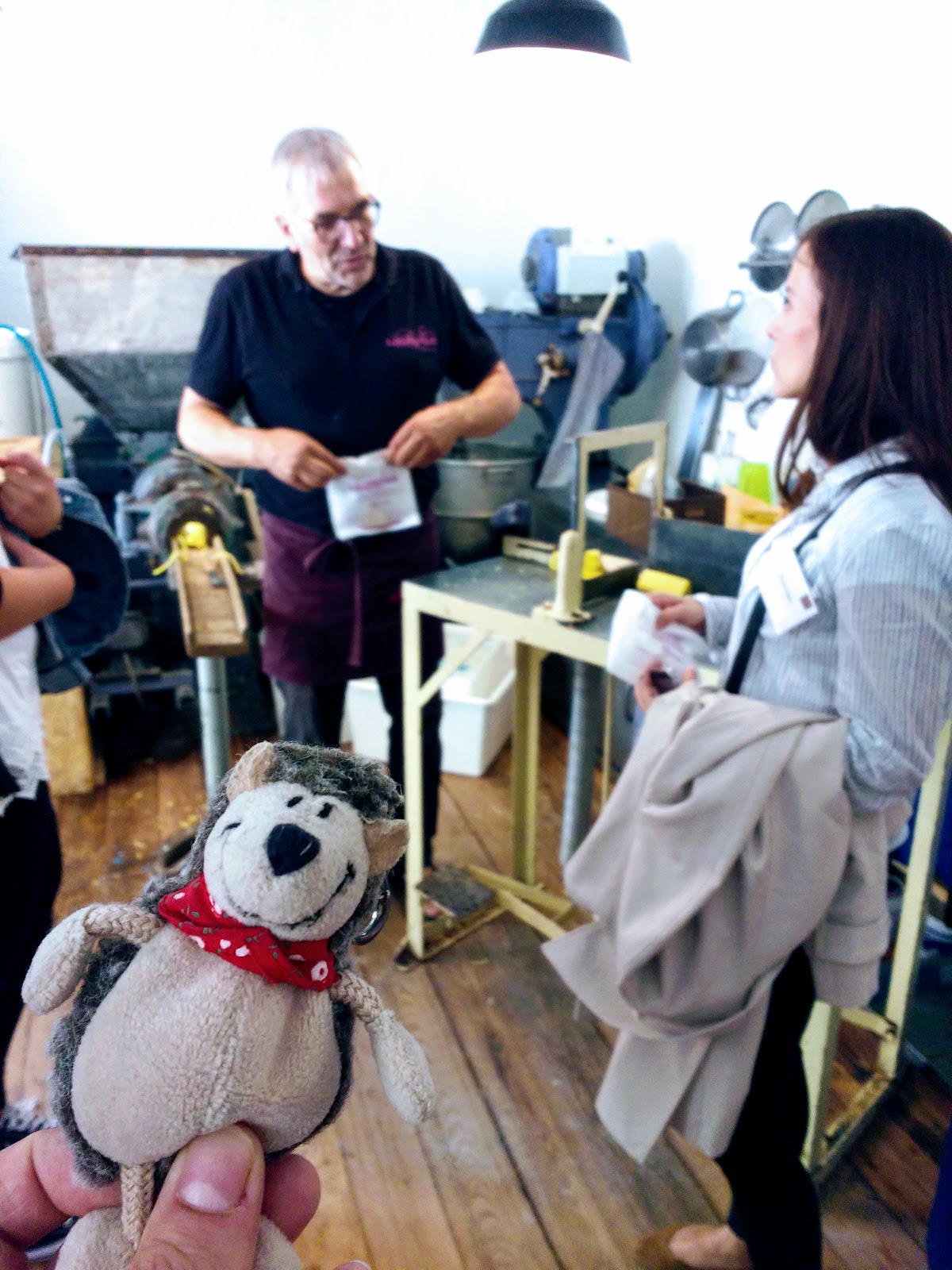 Aber ihr wisst ja schon, dass Basti eine besondere Vorliebe für Sauberkeit und Gewaschenwerden hat (kurz gesagt: Er ist verrückt!) und so begab es sich, dass er mit wollte, als das Schatzi erwähnte, dass sie eine Führung durch die Herstellung einer Seifenfirma haben würde.