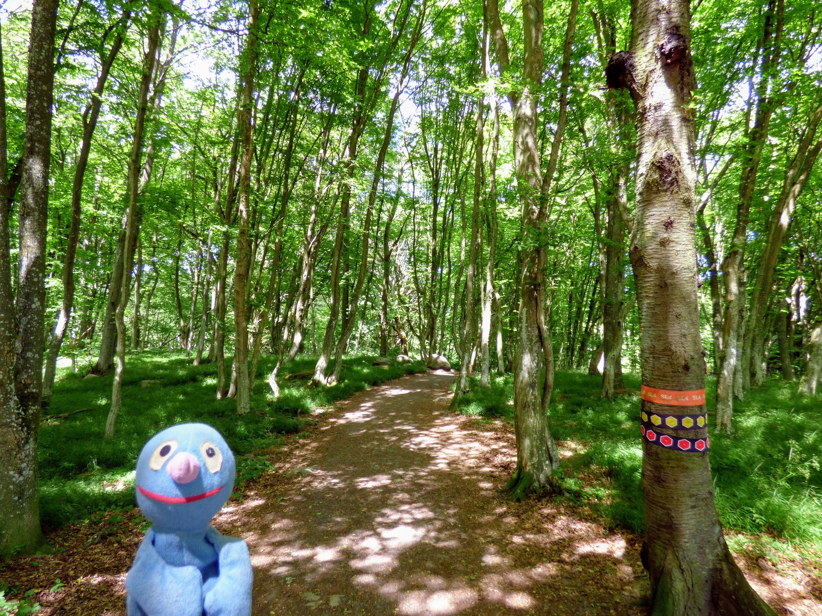 Wir haben uns also vor Ort nach einer intensiven Konsultation der Karte für eine Kombination aus zwei Wanderwegen entschieden: Wir wollten zunächst mit dem gelben Rundwanderweg starten, dann dem roten Pfad folgend auf den Stenshuvud hinaufgehen und uns anschließend über einen weißen Nebenweg zum gelben Rundwanderweg zurück \“durchschlagen\“. Insgesamt etwa 5 – 6 Kilometer, also kein Problem für uns.