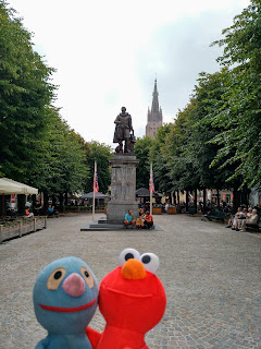 Wie immer startete der Trip für mich mit einer Auswahl der Begleitung. Schatzi-Moppel waren natürlich wie immer gesetzt, aber welche Kuschelfreunde sollten diesmal mitkommen? Zunächst habe ich an den Krümel gedacht, da Belgien mit seiner schönen Schoki und den leckeren Keksen auf seiner Länder-Hitliste vermutlich auf Rang 2 (nach Holland) liegt. Nach reiflicher Überlegung habe ich mich allerdings dagegen entschieden. Der Besuch eines verfressenen Krümelmonsters käme vermutlich einem Angriff auf die nationale Sicherheit Belgiens gleich. Ich habe ihn also vertröstet und versprochen, möglichst viel Schokolade und Kekse mitzubringen. Damit ich dieser Aufgabe auch nachkomme, hat er mir aufgegeben, Knuffi und Elmo mitzunehmen. Wie sich später herausstellte, hat er die beiden sehr intensiv auf den Ausflug vorbereitet (Stichwort: Gehirnwäsche) und mittels Grobi-Fon ständig an ihren Auftrag erinnert: Kekse! Schoki! Mitbringen! Für mich!