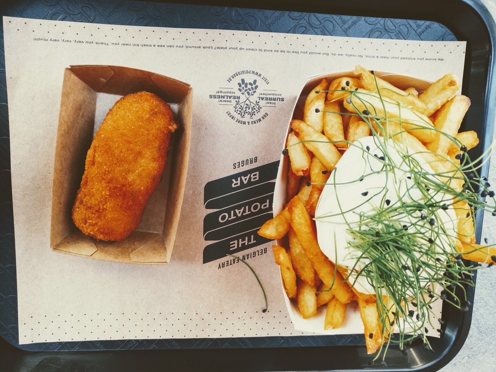 Zum Mittagessen gab es natürlich belgische Pommes, Bitterballen und ein Art Käsekrokette, wo wir schon mal an der Quelle waren.