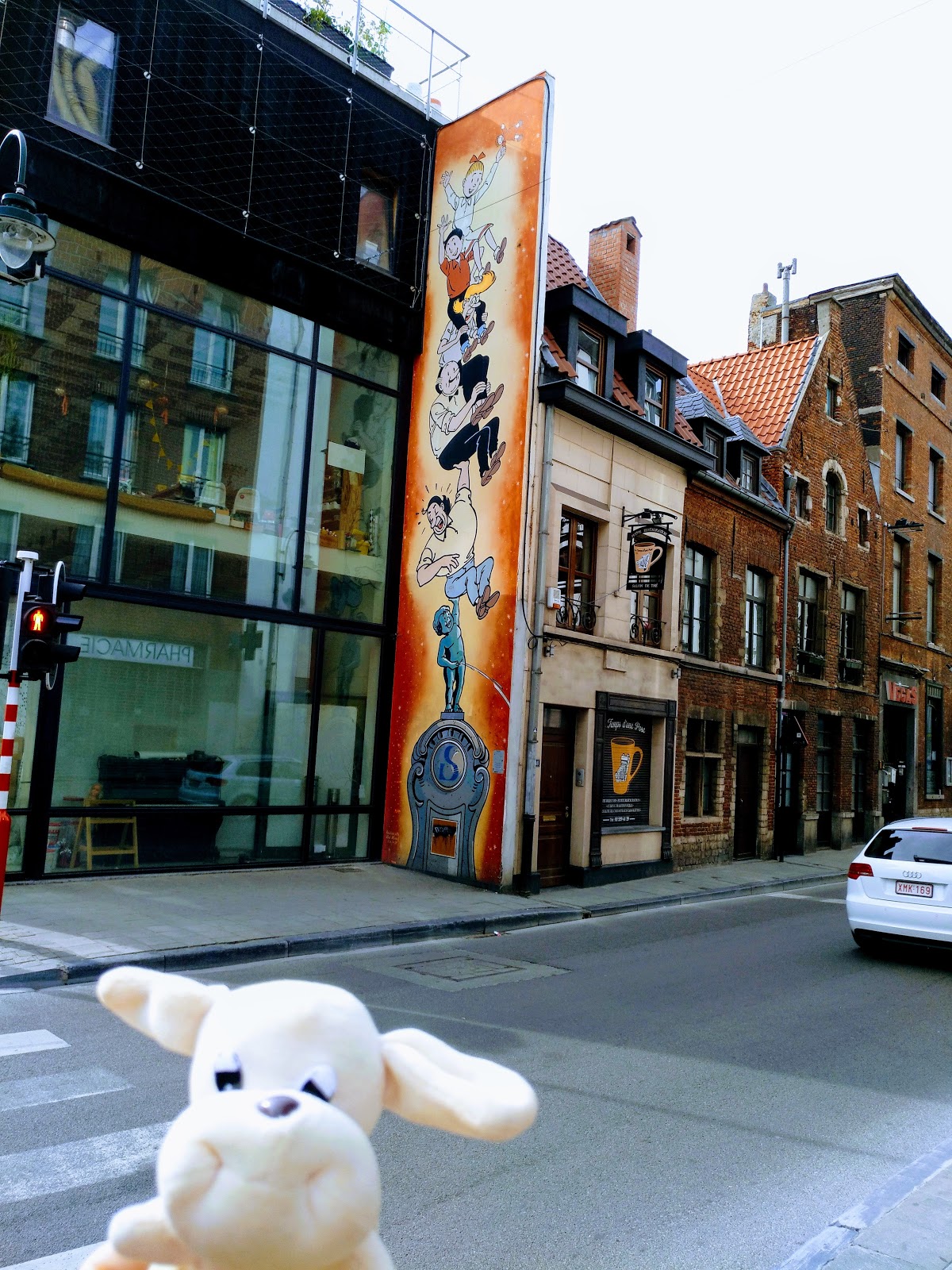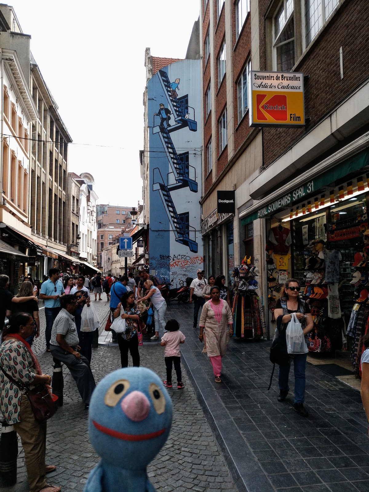 und eine ganze Menge belgischer Figuren, allen voran Tim und Struppi (im Original heißen die übrigens Tintin und Milou).