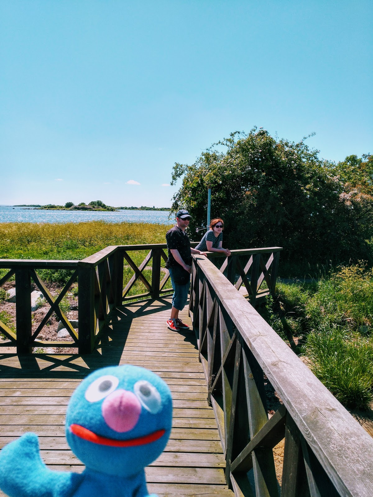 Auf dem Holzsteg und der kleinen Insel pfiff zwar der Wind ganz schön, aber das hat uns nicht so gestört.