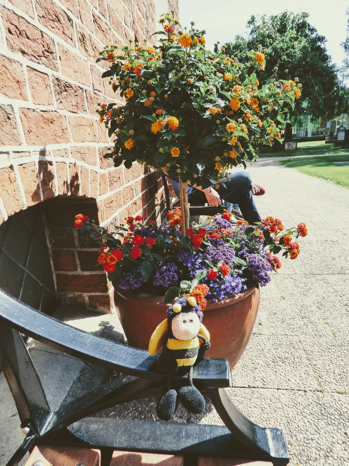 Zur Überbrückung der Wartezeit steuerten wir nach dem Spaziergang am Kanal den Marktplatz an, wo später die große Sause steigen sollte, und die dahinter liegende Kirche, wo wir eine Weile ausruhten und die teils schon recht alten Grabsteine bewunderten.