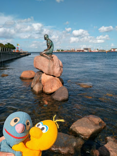 Nach einem weiteren kleinen Fußmarsch haben wir dann endlich die Kleine Meerjungfrau entdeckt. Wie ich euch bei meinem Bericht über Brüssel schon erzählt habe, ist sie wohl mit dem Manneken Pis verwandt, denn beide sind einfach furchtbar klein. Viel kleiner, als man aufgrund ihres Bekanntheitsgrades erwartet. Bei der Kleinen Meerjungfrau kommt nach dazu, dass sie nicht am Ufer sitzt, sondern sich im Wasser befindet und dass furchtbar viele Touris davor herumstehen. Wir haben es trotzdem geschafft, ein nettes Foto mit ihr zu machen.