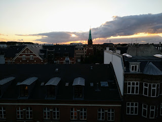 | Sonnenuntergang über Kopenhagen auf der Dachterasse |