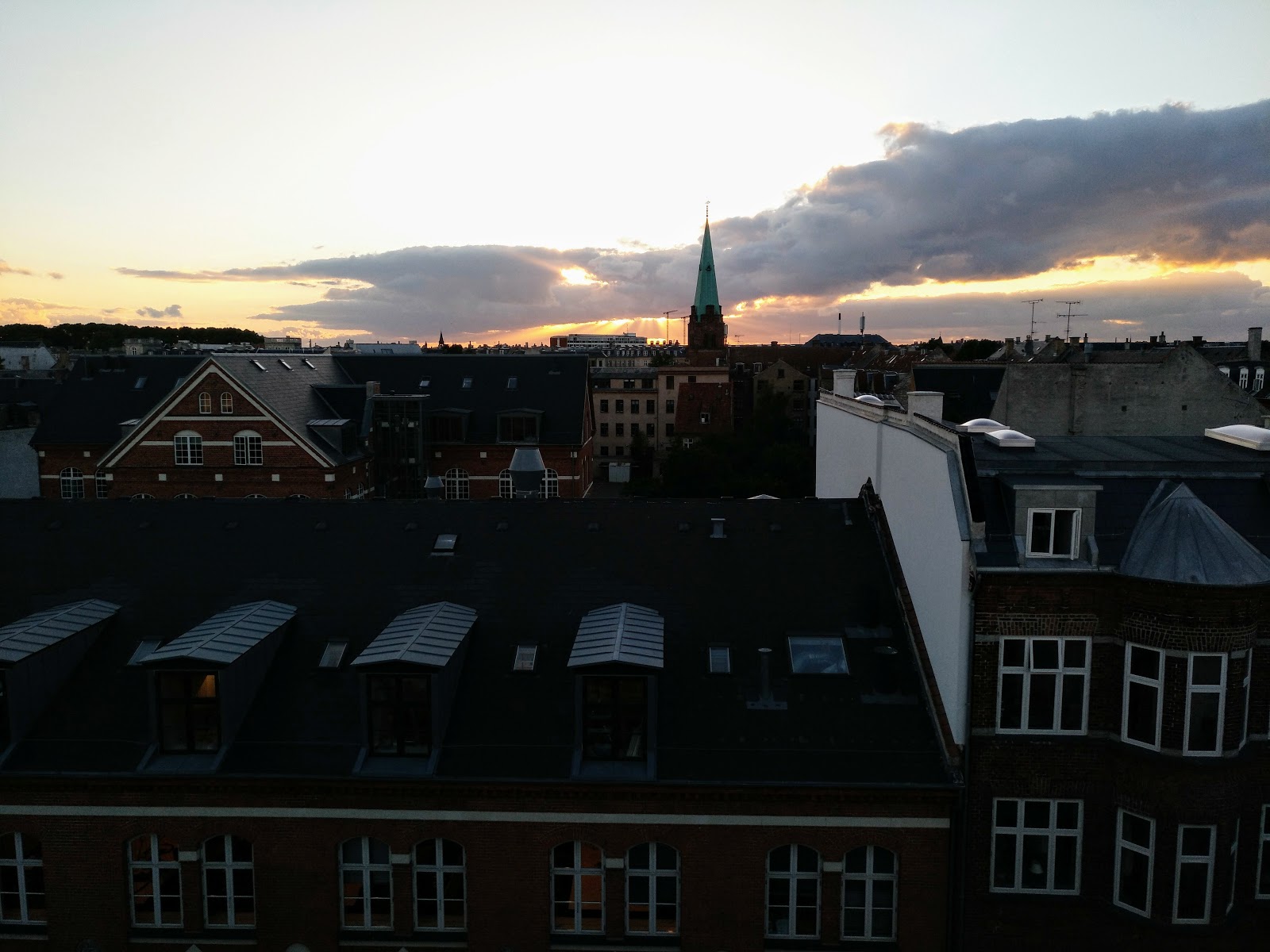 | Sonnenuntergang über Kopenhagen auf der Dachterasse |