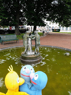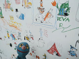 Wir waren ja ursprünglich durch ein Plakat auf diese Ausstellung von Tove Janssons Werken aufmerksam geworden, hatten dann aber den Eindruck, dass wir nicht genug Zeit hätten, sie zu besuchen. Wie es der Zufall wollte, sind wir dann aber zufällig vor der Galerie gelandet, wo die Ausstellung war und bei einem Blick in den Shop haben wir beschlossen, sie doch noch schnell anzuschauen. Es war eh nur noch eine kappe Stunde, bis sie schließen sollte und so waren wir hineingestolpert, total begeistert und mussten am Ende noch ein paar kleine Mumin-Souveniers kaufen (u.a. zwei Tassen, weil wir ja sooo wenig Tassen haben).