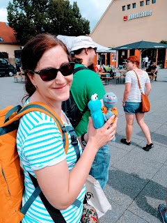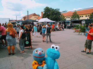 Zu einem solchen Ausflug kann mich natürlich nur ein Freund begleiten: Der Krümel. Wir haben beide unsere kleinen Anhängsel (Kuschel und Kuschelkeks Ginger) zu Hause gelassen und sind mit Schatzi-Moppel (wobei der Moppel ja definitv auch ein Krümelmonster ist) am späten Vormittag losgezogen, um den Markt unsicher zu machen.