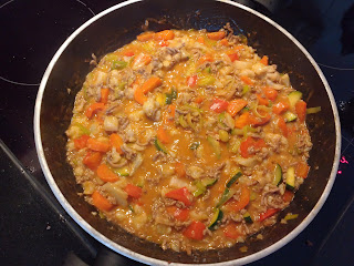 4. Erst die Möhren, dann das Lauch und die Zucchini zugeben und mitbraten.