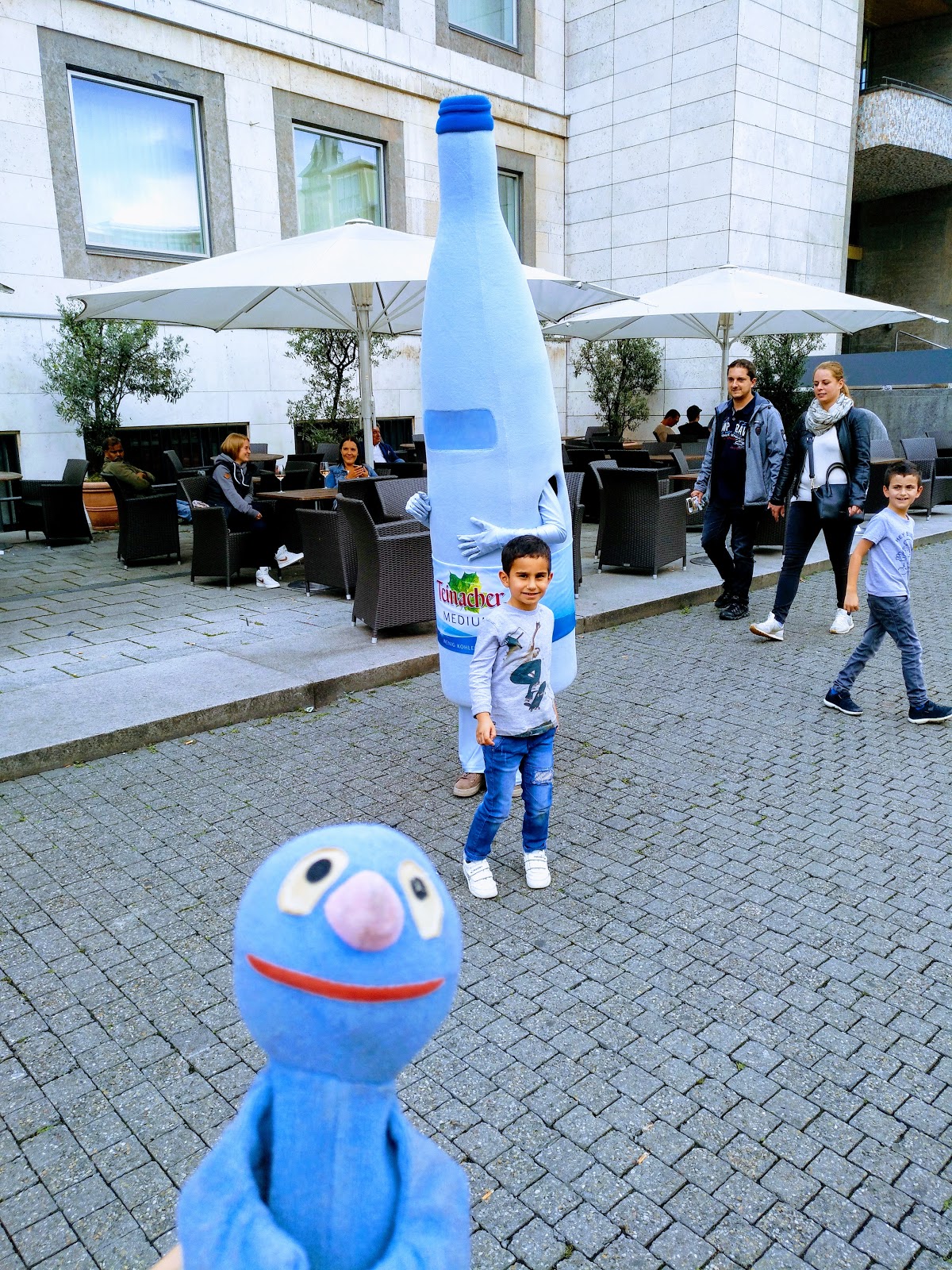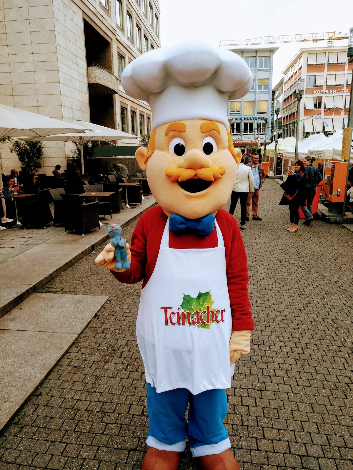 Kurz darauf traf ich Theo von Teinach, das Maskottchen von Teinacher. Was so ein Wassertypi auf einem Weindorf will, ist mir zwar nicht ganz klar, aber egal, er war lustig und wollte mich nicht fressen.