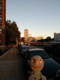 Es gibt viele Läden, aber auch Bars und Restaurants und Wohnhäuser. Während wir die Straße hinunter bummelten, wurde es langsam dunkel. Das war am Prudential Tower sehr schön zu sehen. Schatzi-Moppel wurden immer müder und schließlich bogen wir an einer Kreuzung ab und liefen durch die Commonwealth Avenue wieder zurück zum Hotel. Als wir hier ankamen, war es schon 20 Uhr und Schatzi-Moppel richtig müde. Wir konnten sie noch eine kurze Weile wach halten, aber bereits um 21 Uhr (= 3 Uhr nachts) war dann doch das Licht aus und fast sofort schlummerten alle friedlich.