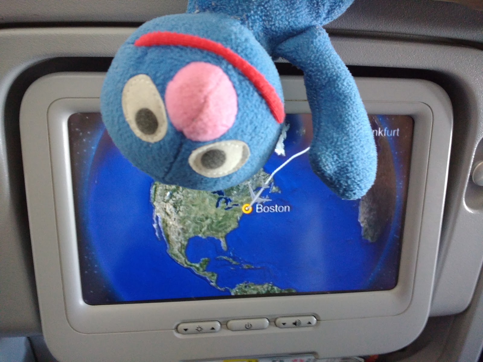 In Frankfurt angekommen, begaben wir uns direkt zum Schalter für den Abflug nach Boston. Es gab zunächst eine Bordkarten-Kontrolle, wo der Moppel dann herausgezogen wurde. Der Special Check war dann aber nicht besonders schlimm und es ist nicht mal aufgefallen, dass er den ESTA-Ausdruck vom Schatzi dabei hatte. Im Duty Free haben wir uns alle wieder getroffen, sind zum Gate gegangen und dann begann quasi auch schon das Boarding. Abflug war fast pünktlich um 13 Uhr.