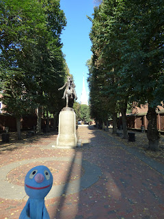 Hier steht das Paul Revere House, das leider nicht besonders hübsch war und auf dem Foto gar nicht gewirkt hat. Stattdessen seht ihr Fotos einer coolen Statue und von Unterwegs-Eindrücken.