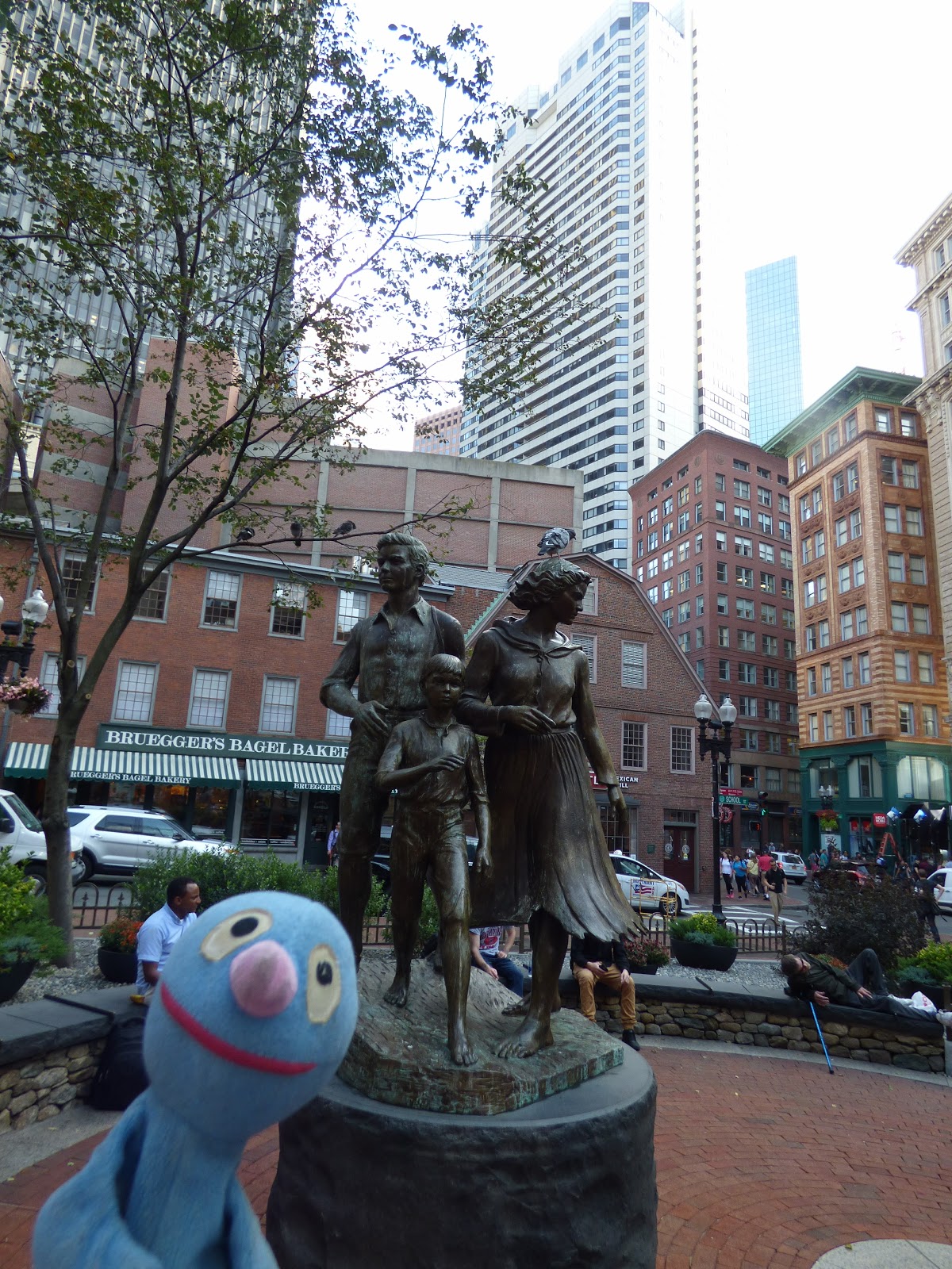Zunächst mussten Schatzi-Moppel gemeinsam das Duschrätsel lösen, denn das Schatzi hat es nicht allein geschafft, eine erträgliche Wassertemperatur einzustellen. Dass das Wasser auch von oben über dem Hahn aus einer Düse kann, hat die Sache zusätzlich erschwert. Irgendwann haben sie es aber herausgefunden, beide geduscht und um kurz nach 7 ging es los. Auf dem Weg zu unserer T-Haltestelle wurde erstmal ein Starbucks für ein erstes Frühstück aufgesucht. Danach sind wir mit unserer Green Line bis Gouvernment Center gefahren, wo der Beginn des Freedom Trail ist. Wir haben uns ein Info Heftchen mitgenommen und unsere Entdeckungsreise begonnen. Da das Einfügen der Fotos auf dem Tablet recht schwierig ist und Bildunterschriften kompliziert sind, zeige ich euch die Bilder alle ohne Untertitel. Falls ihr Fragen zu einzelnen Fotos habt, meldet euch gerne.