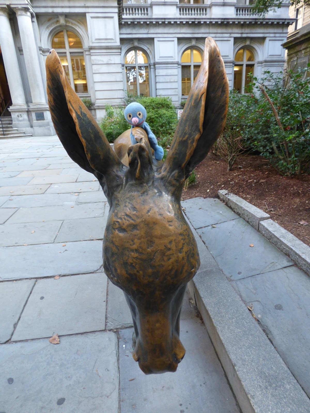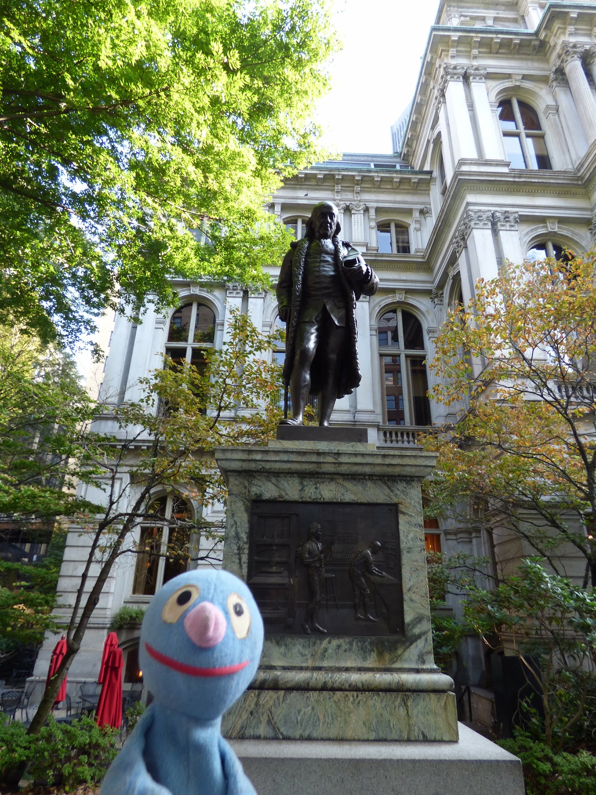 Hinter der Kirche, vor dem Old City House, steht eine Statue von Benjamin Franklin und ein klein wenig entfernt eine Statue von einem Esel.
