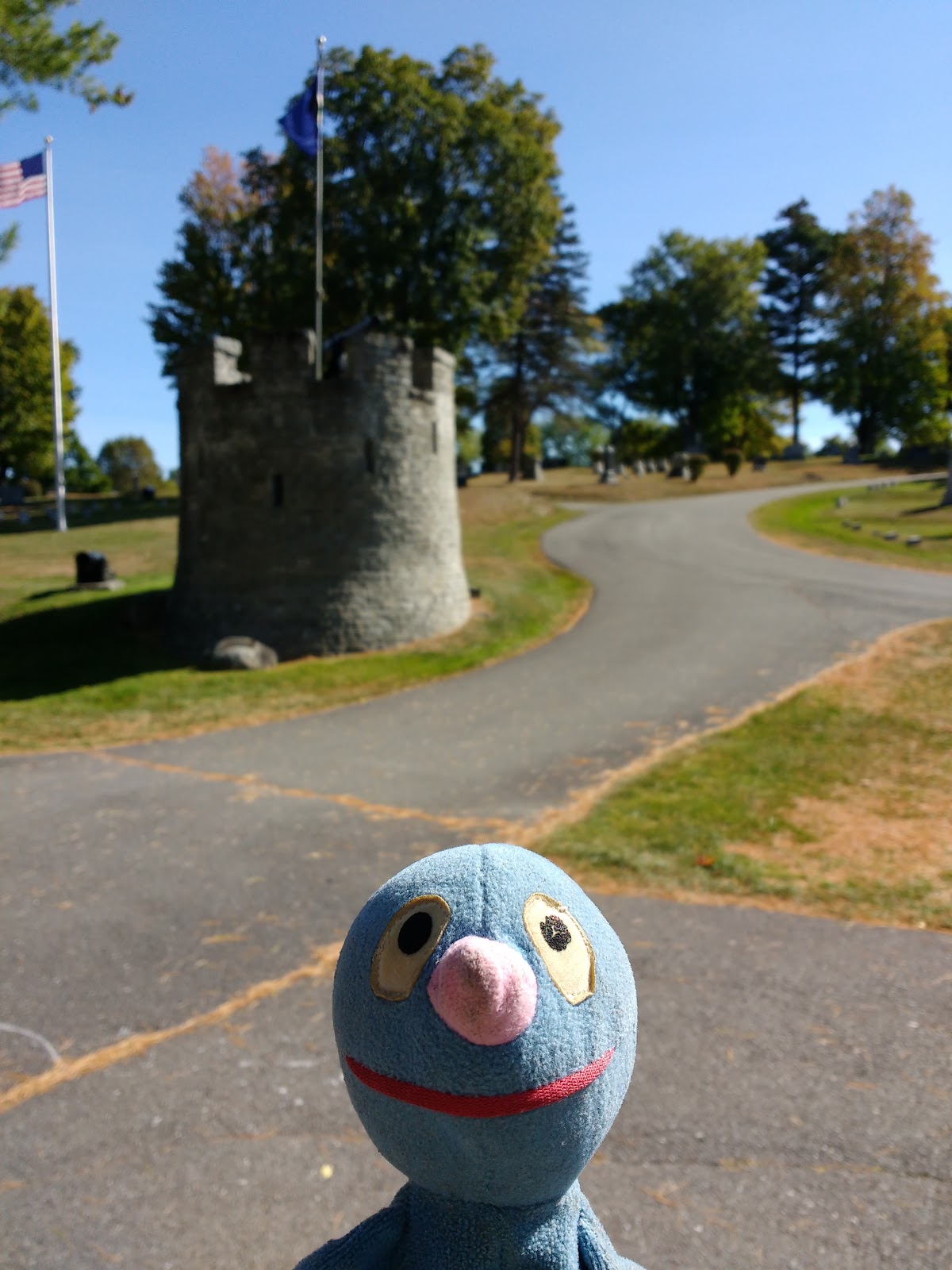Danach ging es nach Bangor. Das Besondere an diesem Ort ist wohl die Tatsache, dass Stephan King hier wohnt und es eine Reihe von Schauplätzen aus seinen Büchern gibt. Zunächst waren wir auf dem Mount Hope Cemetary, das ist der Friedhof, der in Friedhof der Kuscheltiere vorkommt. Lustigerweise kann man auf dem Friedhof mit dem Auto herumfahren, was wir aufgrund der Größe auch gemacht haben.
