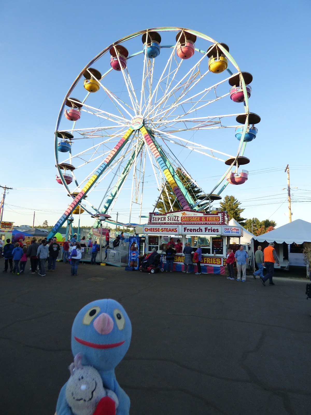 Danach sind wir dem Tipp unserer Gastwirtin gefolgt und auf den Fryeburg Fair gefahren. Nachdem wir einen Parkplatz für 5 $ gefunden hatten und ewig zum Eingang gelaufen sind, waren auch noch 12 $ Eintritt pro Nase fällig. Gut, dass Plüschi-Nasen nicht gezählt haben.