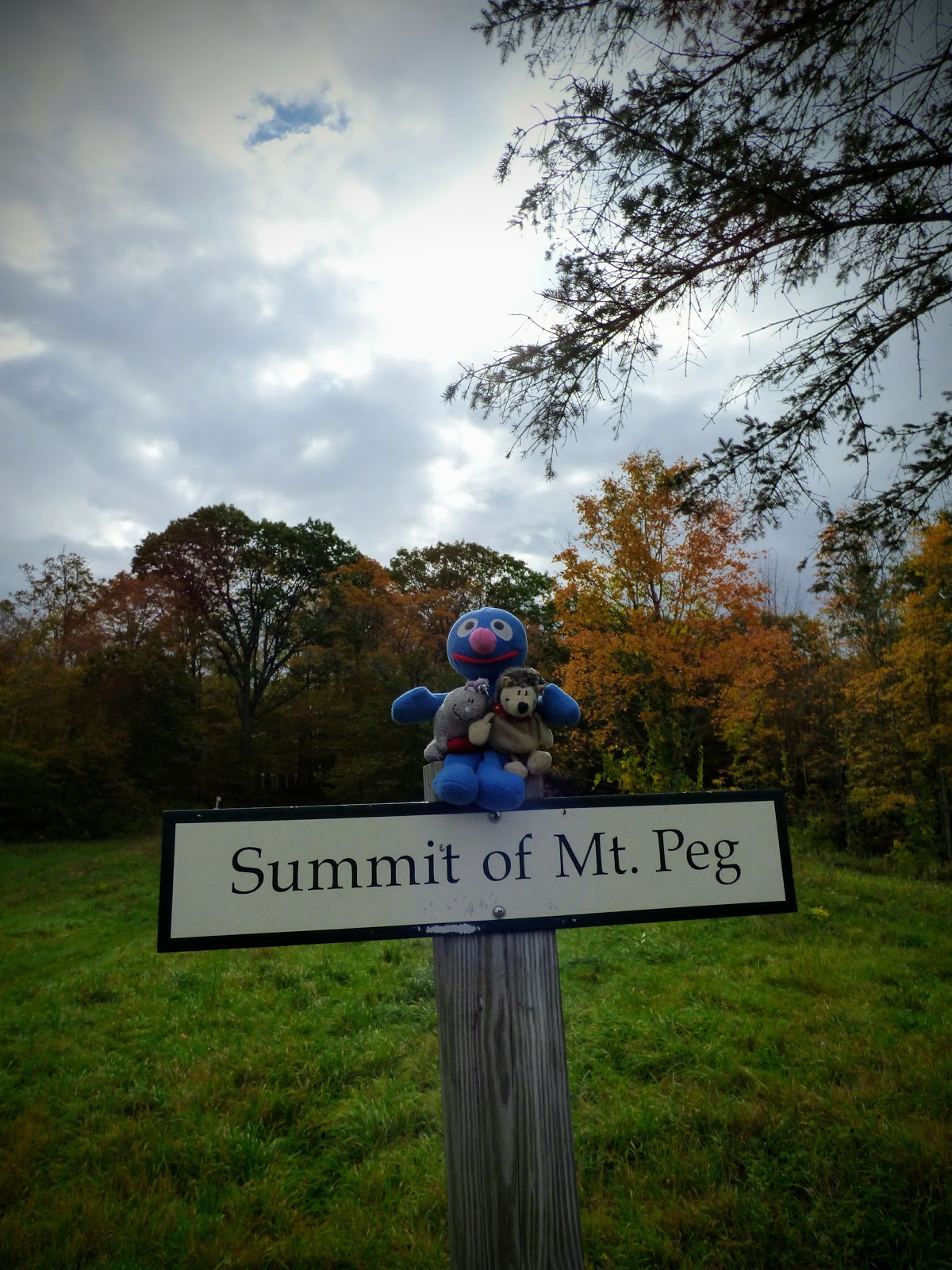 Erstes Ziel war der Mount Peg mit einer Höhe von etwas über 1000 Fuß. Fahrzeit dorthin ca. 10 Minuten. Nachdem wir unser Auto auf dem leeren Parkplatz abstellt hatten, haben sich Schatzi-Moppel an den Aufstieg gemacht. Der Summit Trail führte stetig bergauf zum Gipfel, den wir nach einer halben Stunde erreicht haben. Hier bot sich ein recht schöner Ausblick mit Tendenz zu Sonne, die durch die Wolken lugt.
