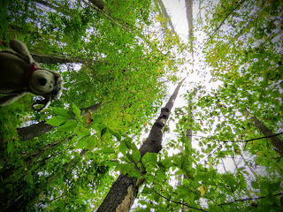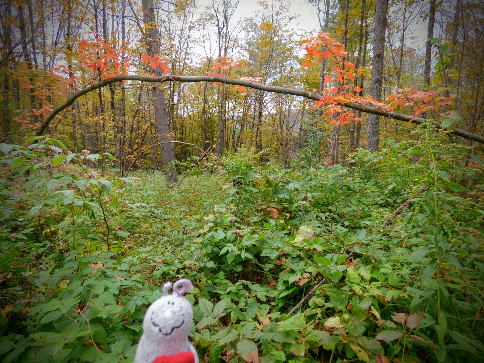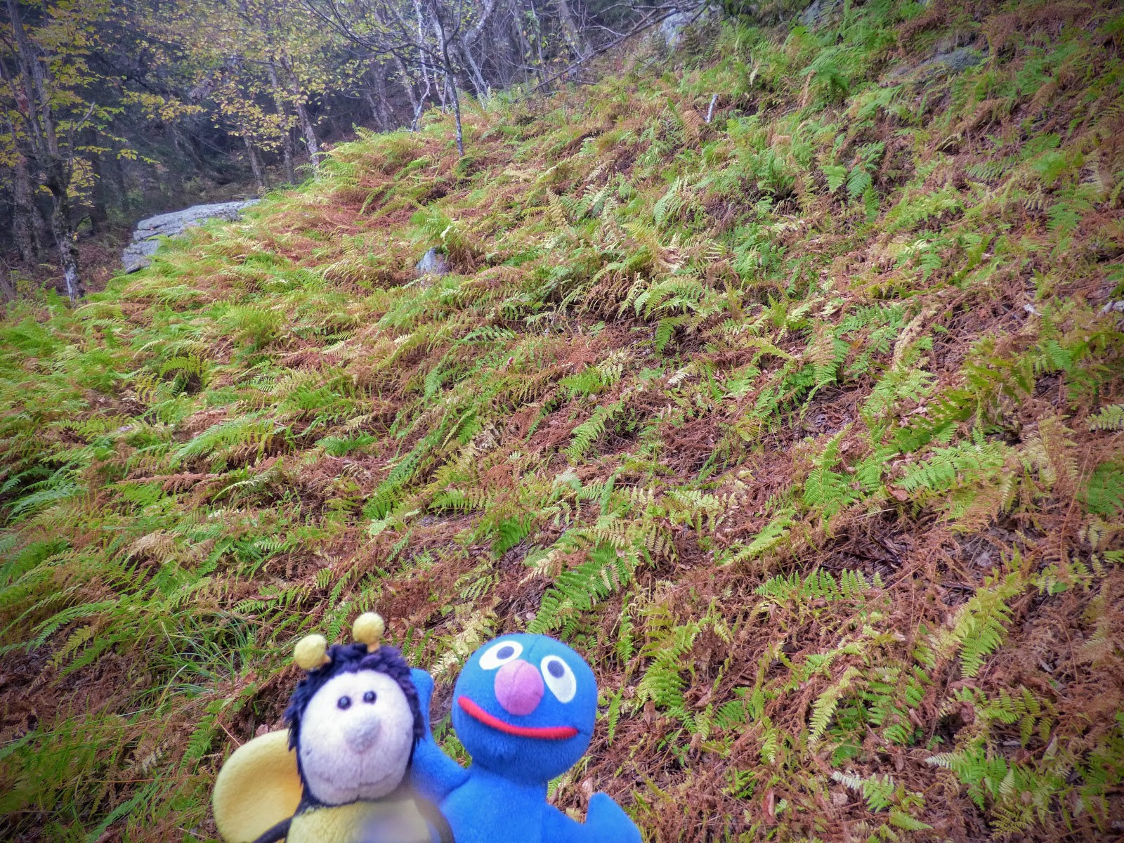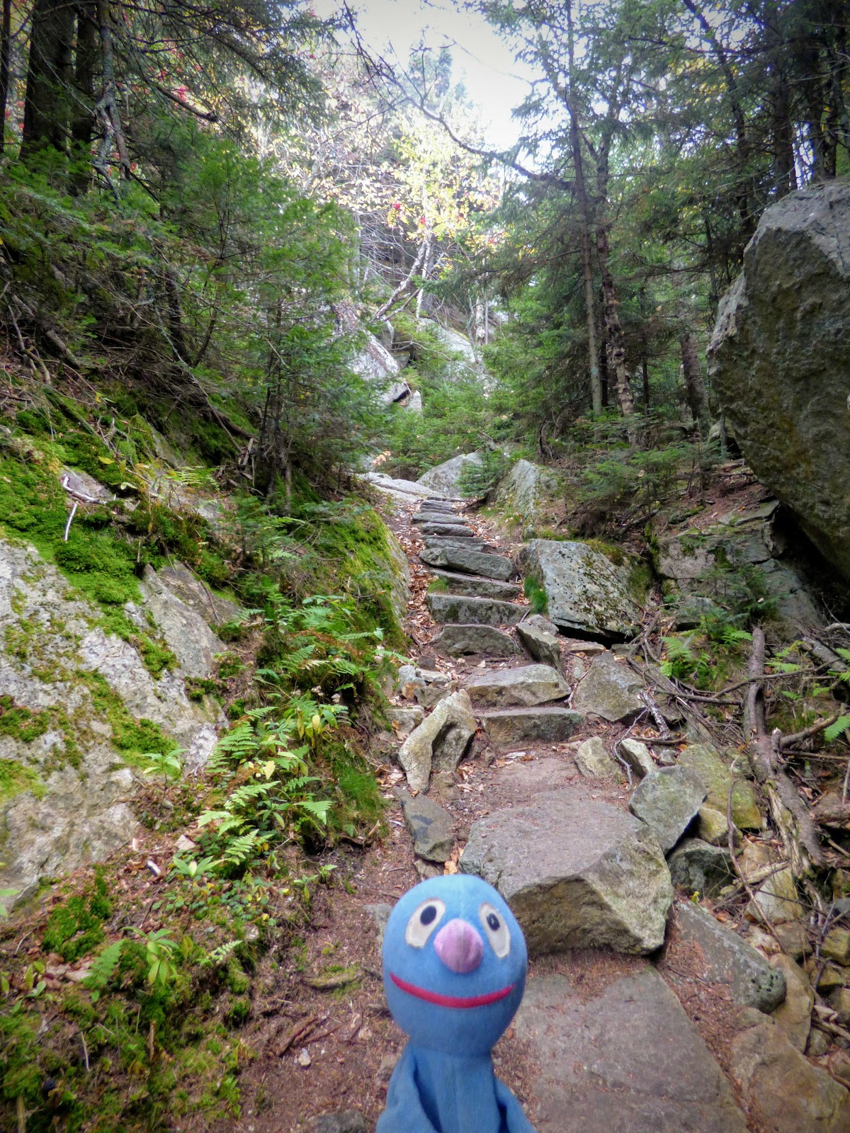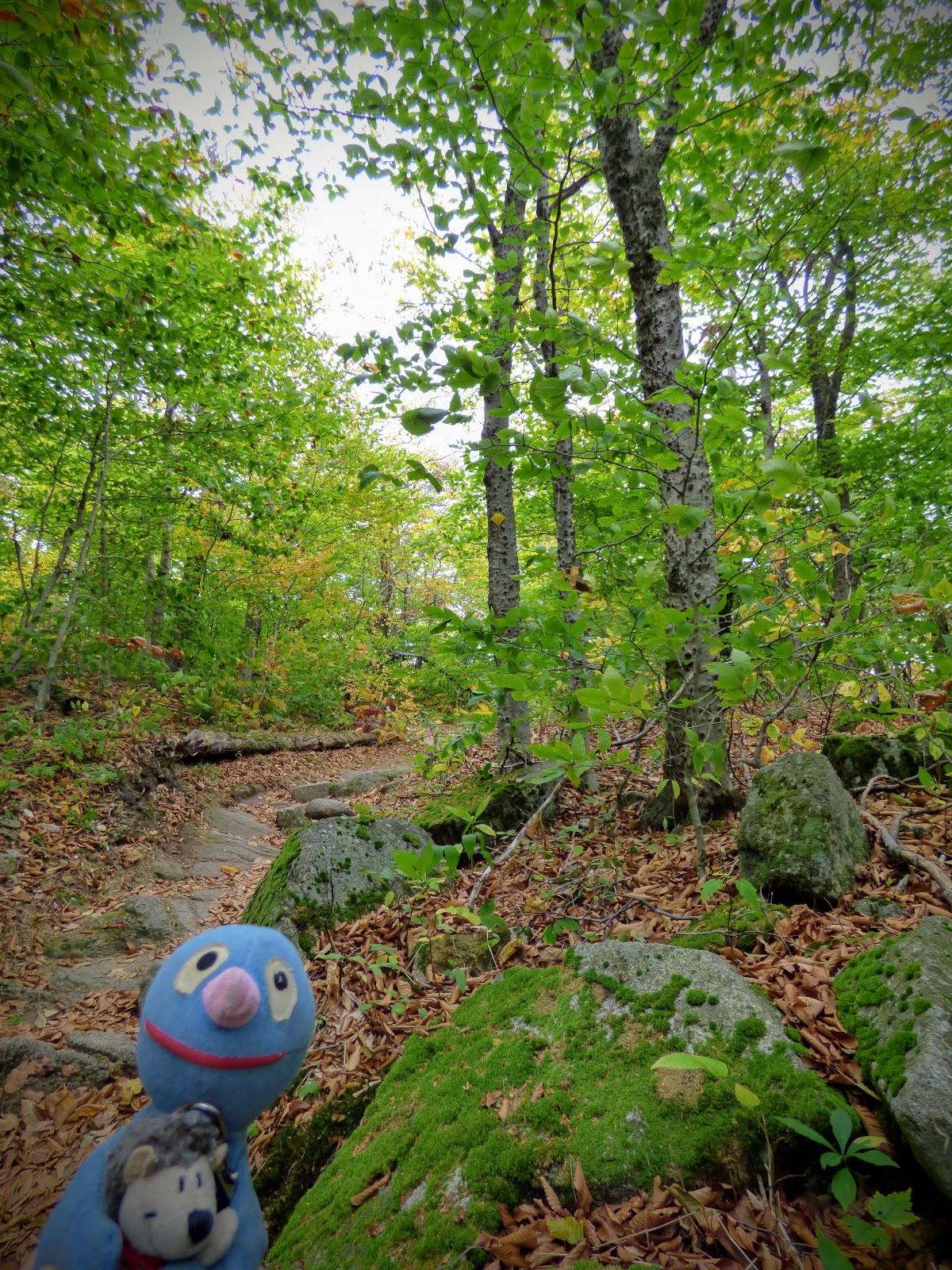 Nach einer Fotopause ging es wieder zurück zum Auto. Als nächstes wurde der Mount Ascutney angesteuert, der etwas über 3000 Fuß hoch ist. Hier wollten wir zwei Wasserfälle besuchen. An der Einfahrt zum Park hat das Schatzi die Gebühr gezahlt und hat dem Moppel die “Anweisung“ des Rangers weitergegeben, durch das gelbe Tor zum Parkplatz zu fahren. Leider kam aber nach dem gelben Tor für lange Zeit kein Parkplatz, stattdessen ging es stetig bergauf. Am Ende der Straße waren wir dann auf dem Gipfelparkplatz und weniger als eine Meile vom Gipfel entfernt. Also geht man halt mal hin. Es war allerdings total neblig und kalt. Der Gipfel war vollkommen verhangen und quasi nicht zu sehen. Naja, schön ist anders.