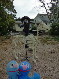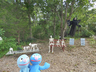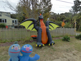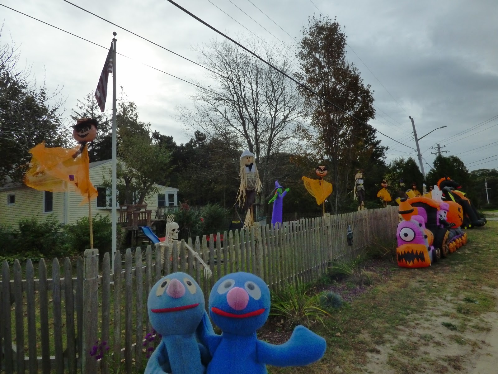 Als wir hier weggefahren sind, fing es an zu tropfen. Diese Tropfen gingen bald in einen ordentlichen Regenguss über, der gar nicht wieder aufhören wollte. Aus diesem Grund haben wir in der Nähe von Plymouth an einem Friendlys fürs Mittagessen angehalten und die Besichtigung der Stadt ausgelassen. Wie sich schon wenig später herausgestellt hat, war das eine sehr gute Idee, denn kurz vor Boston begann der Stau, der sich fast bis zum Flughafen gezogen und uns eine längere Fahrzeit von mindestens einer halben Stunde eingebracht hat. Während wir noch von Cape Cod heruntergefahren sind, gab\’s ein bisschen coole Halloween-Deko zu sehen, die seht ihr nun nachfolgend, denn ansonsten gab es unterwegs keine Fotospots mehr:
