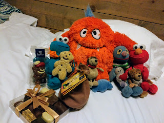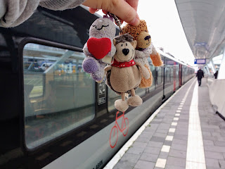 Zunächst musste ich entscheiden, wer außer Schatzi-Moppel mich begleitet. Das war nicht so leicht, denn es kamen einige in Frage. Meine Wahl fiel schließlich auf folgende Freunde: Der Kuschel (der kommt ja immer mit), Krümel und Ginger, der Kuschelkeks (Krümel hatte nämlich gestern Geburtstag und Ginger nimmt er ja inzwischen immer mit), Elmo mit Jogi und Basti (die drei waren in Korschenbroich als Vertretung von Trini, während der zu Besuch in Stuttgart war) und Trini als Abschluss seines Urlaubs. Das waren ganz schön viele, aber irgendwie hatten es alle verdient.