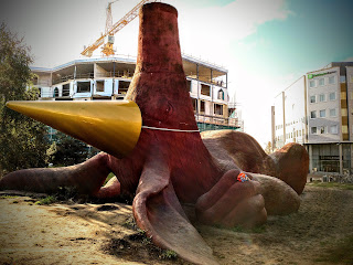 Auf dem Weg zum Bahnhof konnten wir noch schnell ein paar Fotospots ausfindig machen, wie z.B. die Kirche im Gerüst und eine merkwürdige Skulptur.