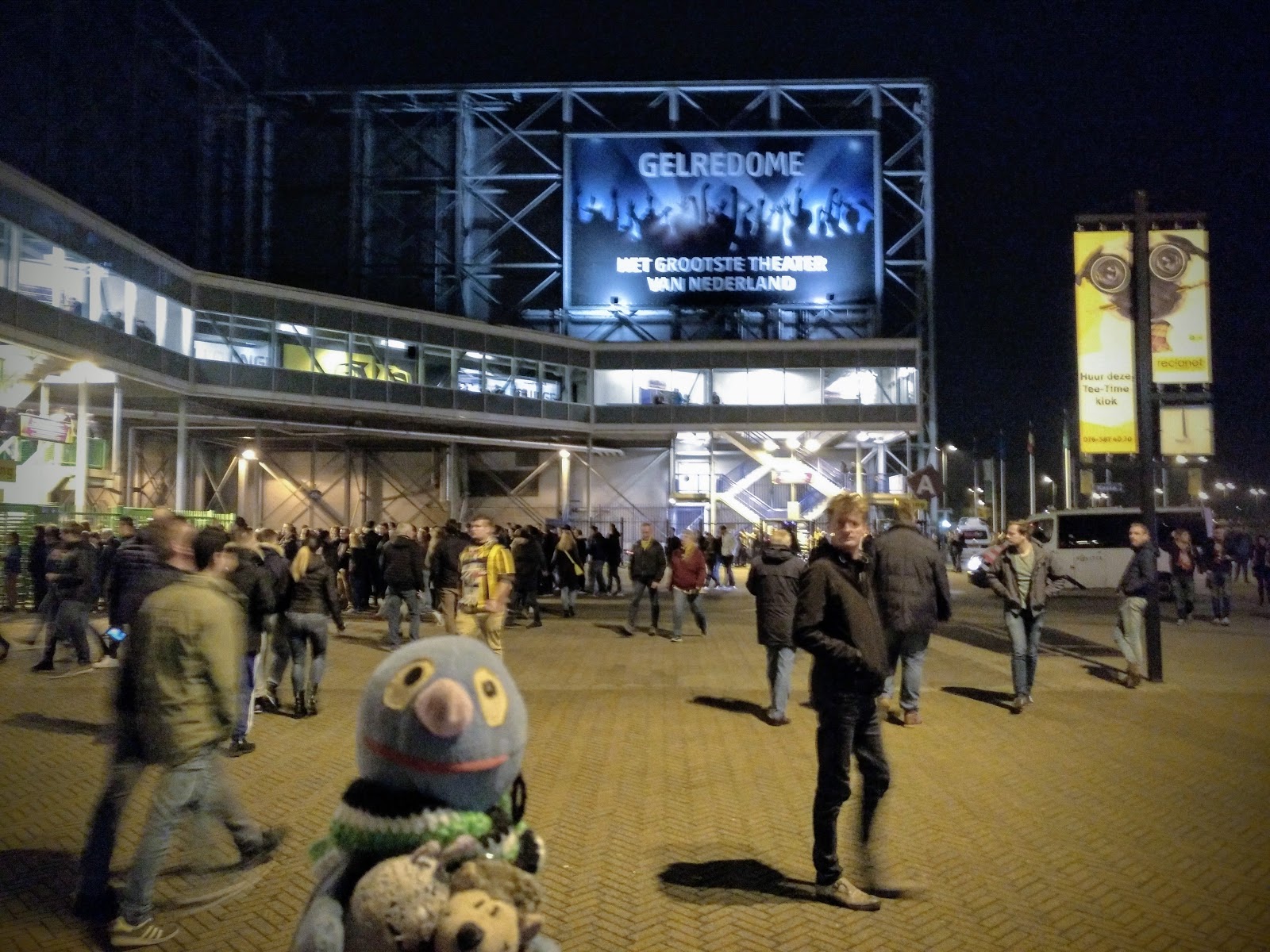 Um die Mittagszeit begannen wir uns zu wundern, warum so viele biertrinkende Menschen mit Fußballkleidung in den Straßen unterwegs waren. Eine kurze Suche im Internet konnte das Rätsel lösen: Am Abend war ein Euro League Spiel in Arnheim. Zu Gast war Zulte Waregem aus Belgien. Mit der Zeit reifte der Entschluss, dieses Spiel live sehen zu wollen. Zuerst aber musste Krümels Geburtstag noch gebührend gefeiert werden. Dies hatten wir bereits mittags kurz gemacht, als wir in einer Gaststätte waren, die ihren 20. Geburtstag hatte.