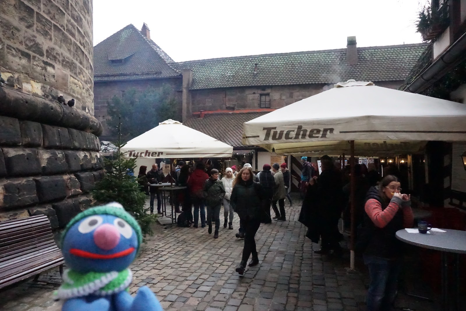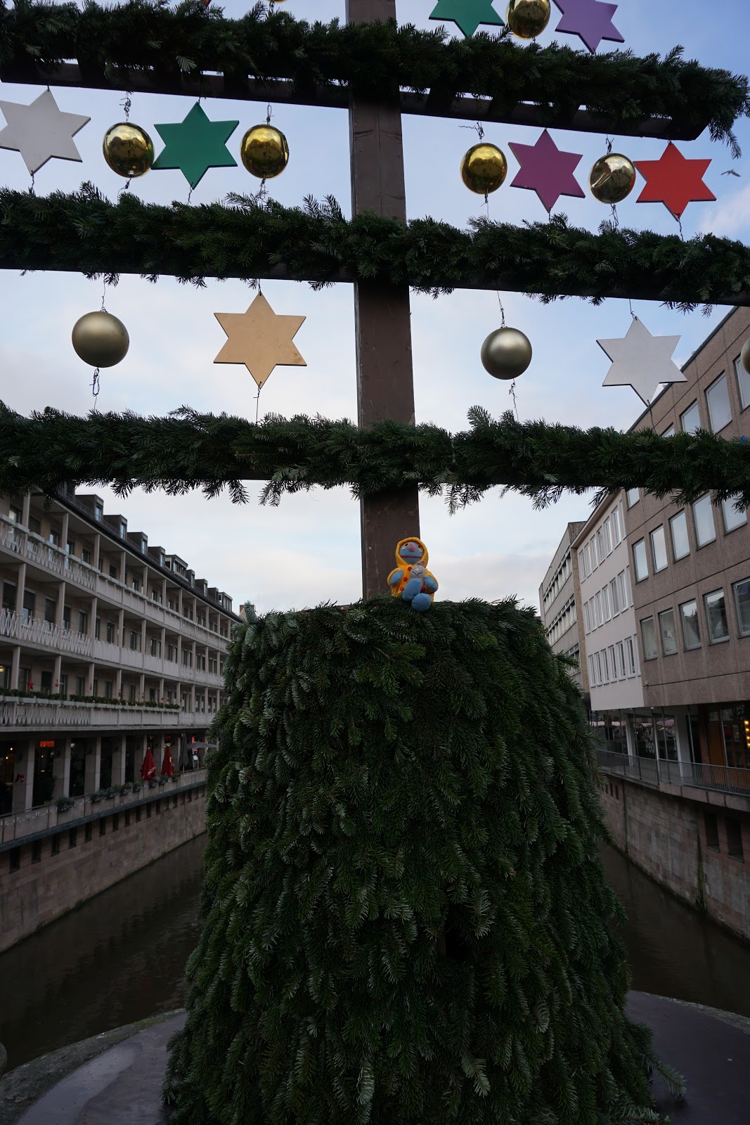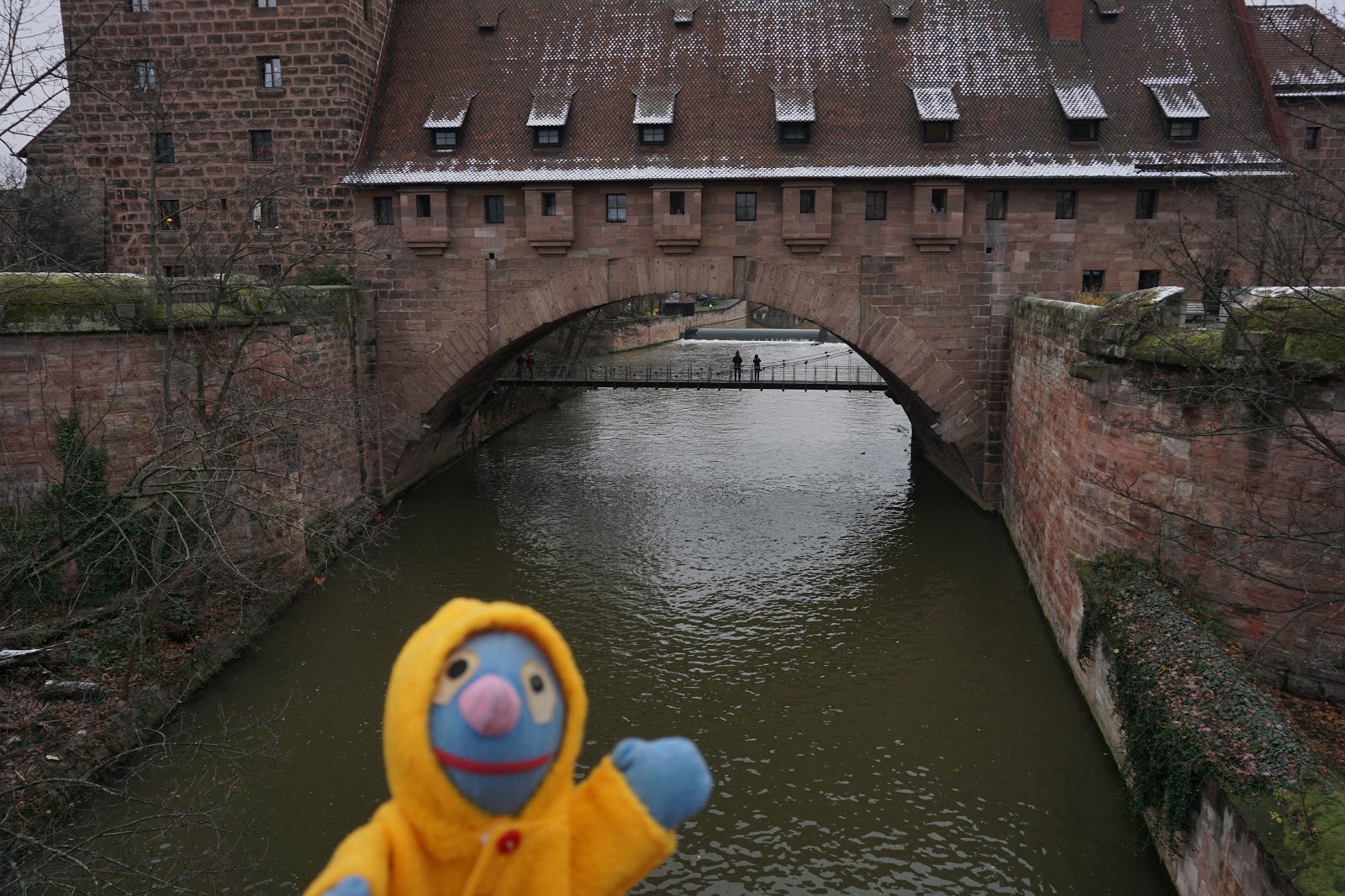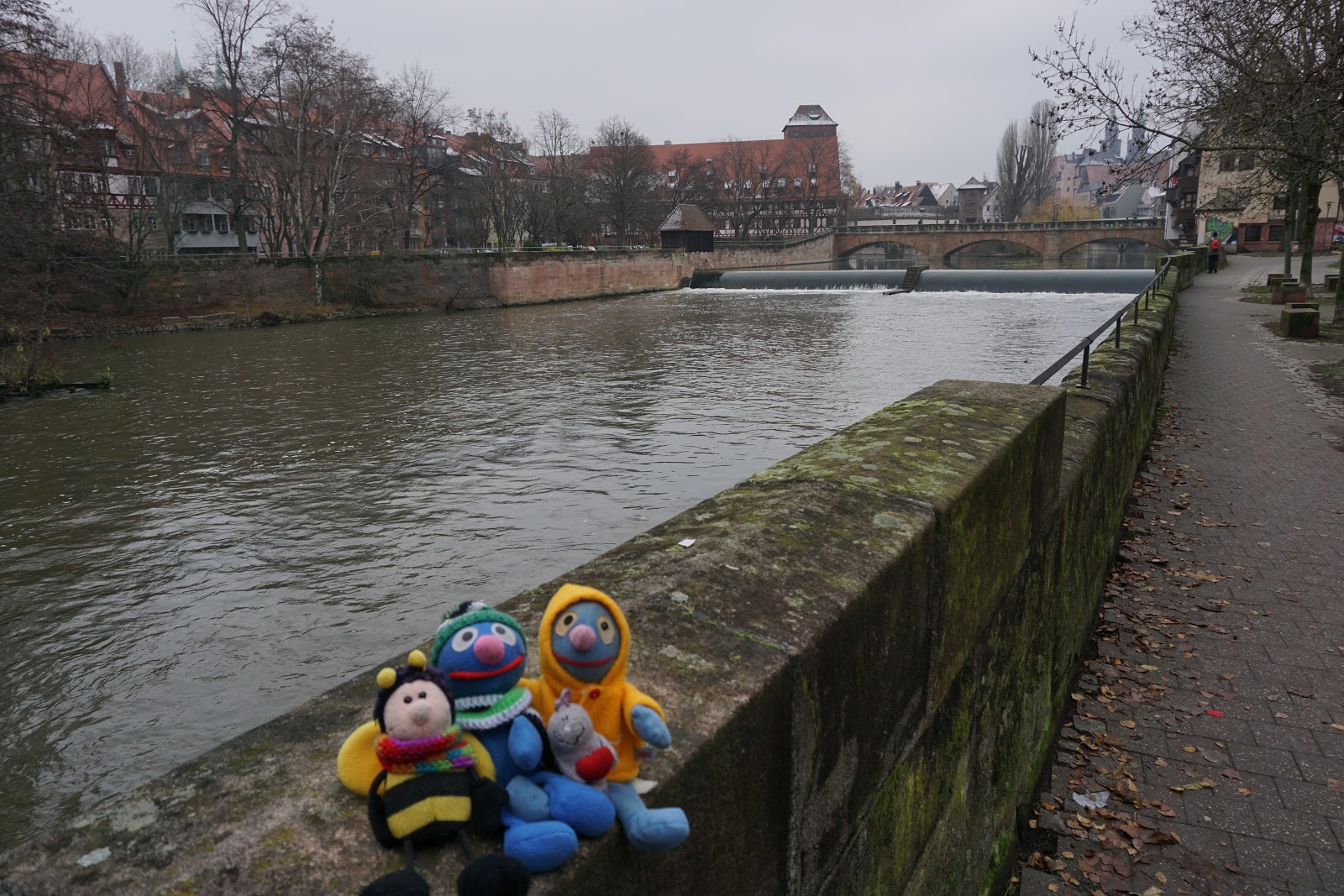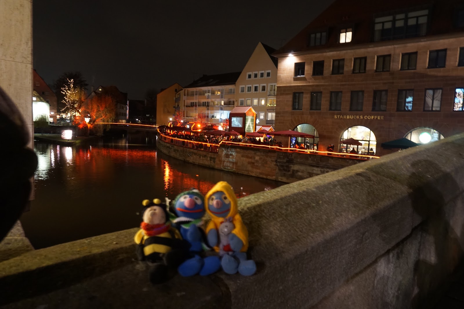 Da wir ungünstigerweise pünktlich zur Eröffnung des Weihnachtsmarkts an diesem angekommen waren, war hier zuächst kein Durchkommen mehr. Wir entschieden uns dazu, eine Feuerzangenbowle zu trinken und ein bisschen auf den Fluß, die Pegnitz, zu schauen.