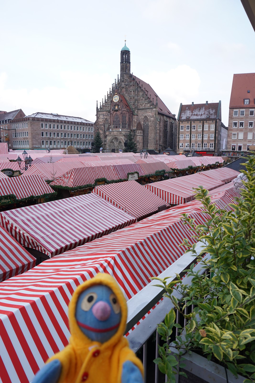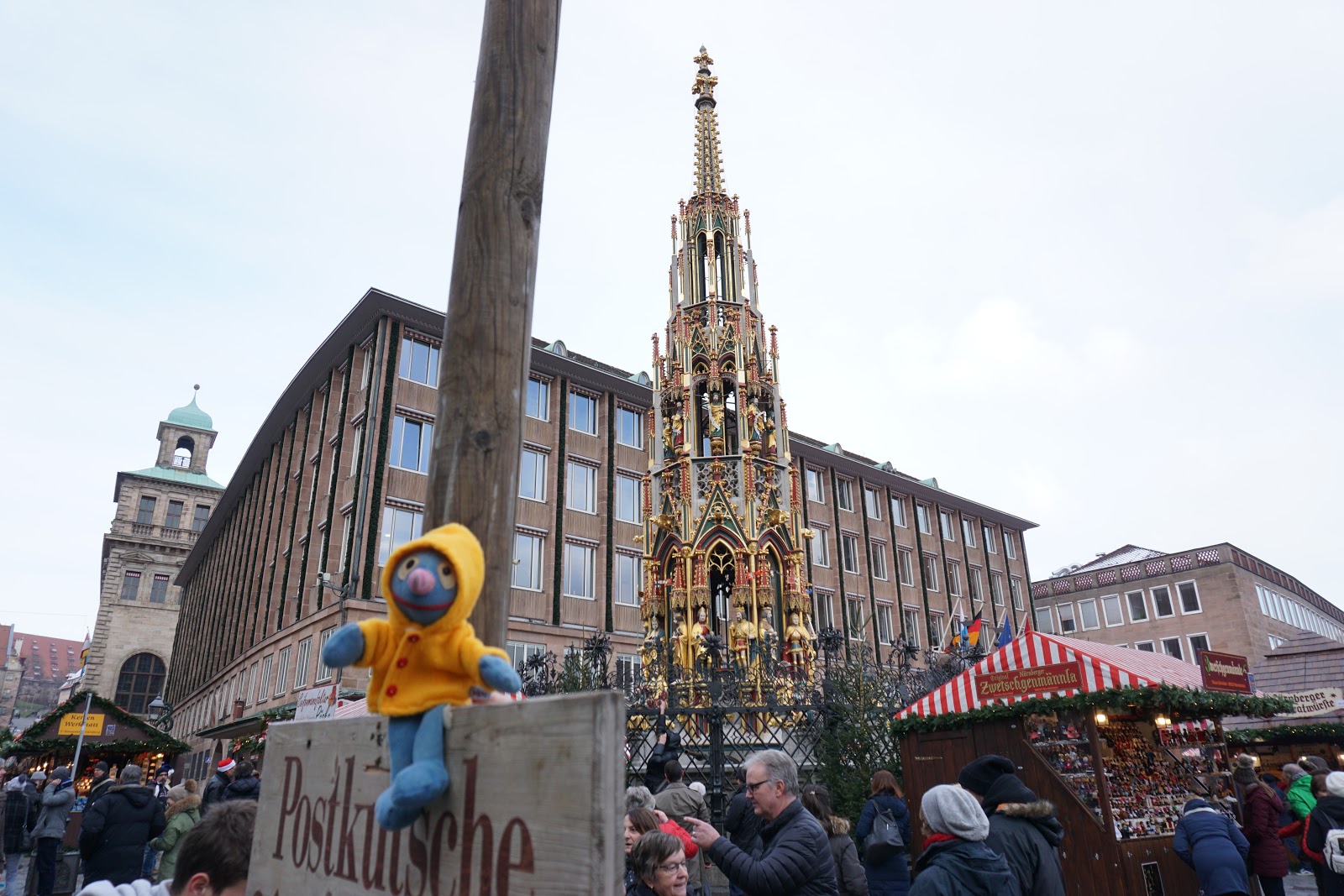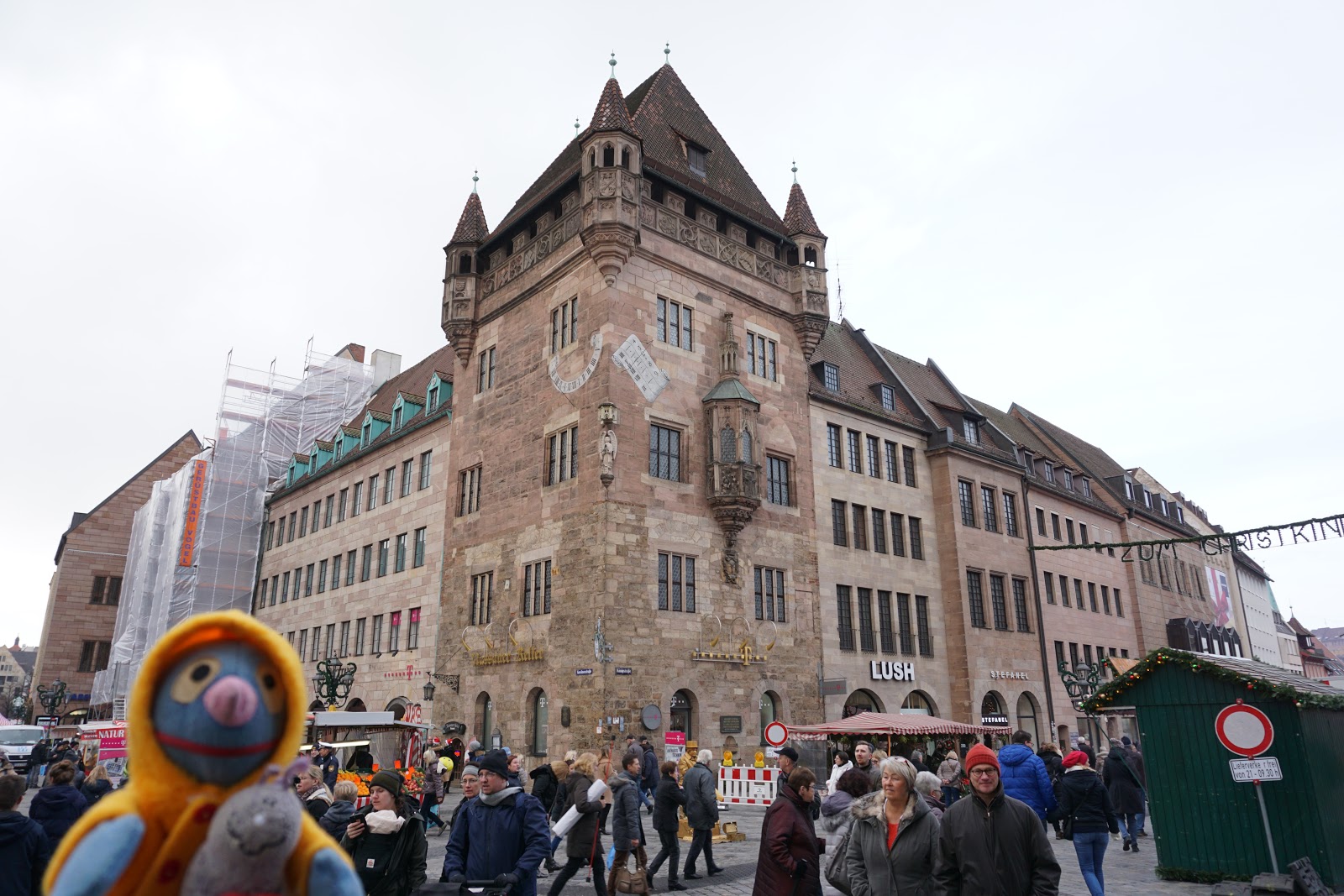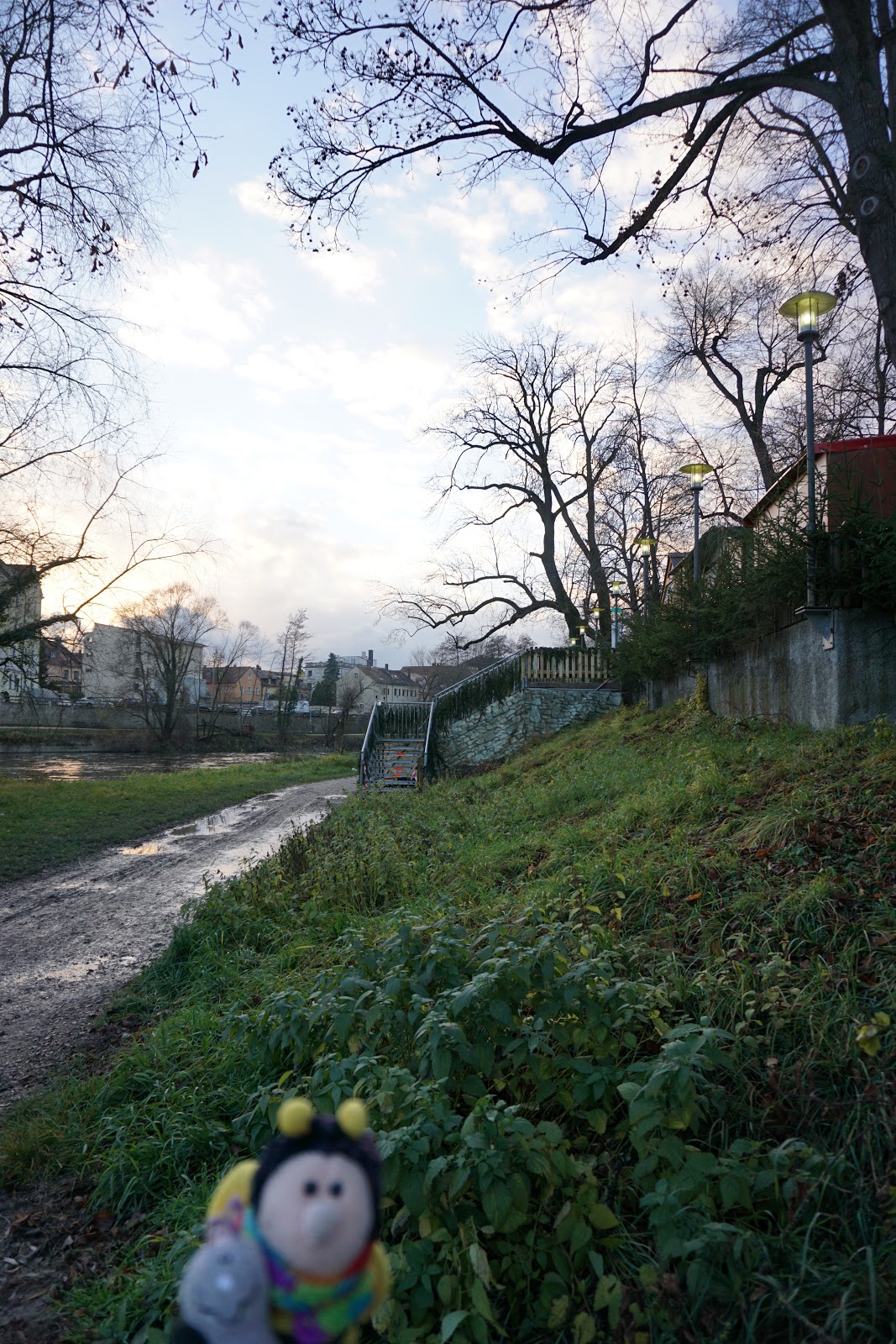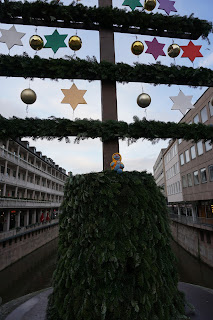 Da wir ungünstigerweise pünktlich zur Eröffnung des Weihnachtsmarkts an diesem angekommen waren, war hier zuächst kein Durchkommen mehr. Wir entschieden uns dazu, eine Feuerzangenbowle zu trinken und ein bisschen auf den Fluß, die Pegnitz, zu schauen.