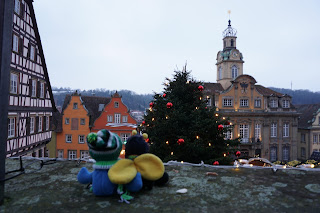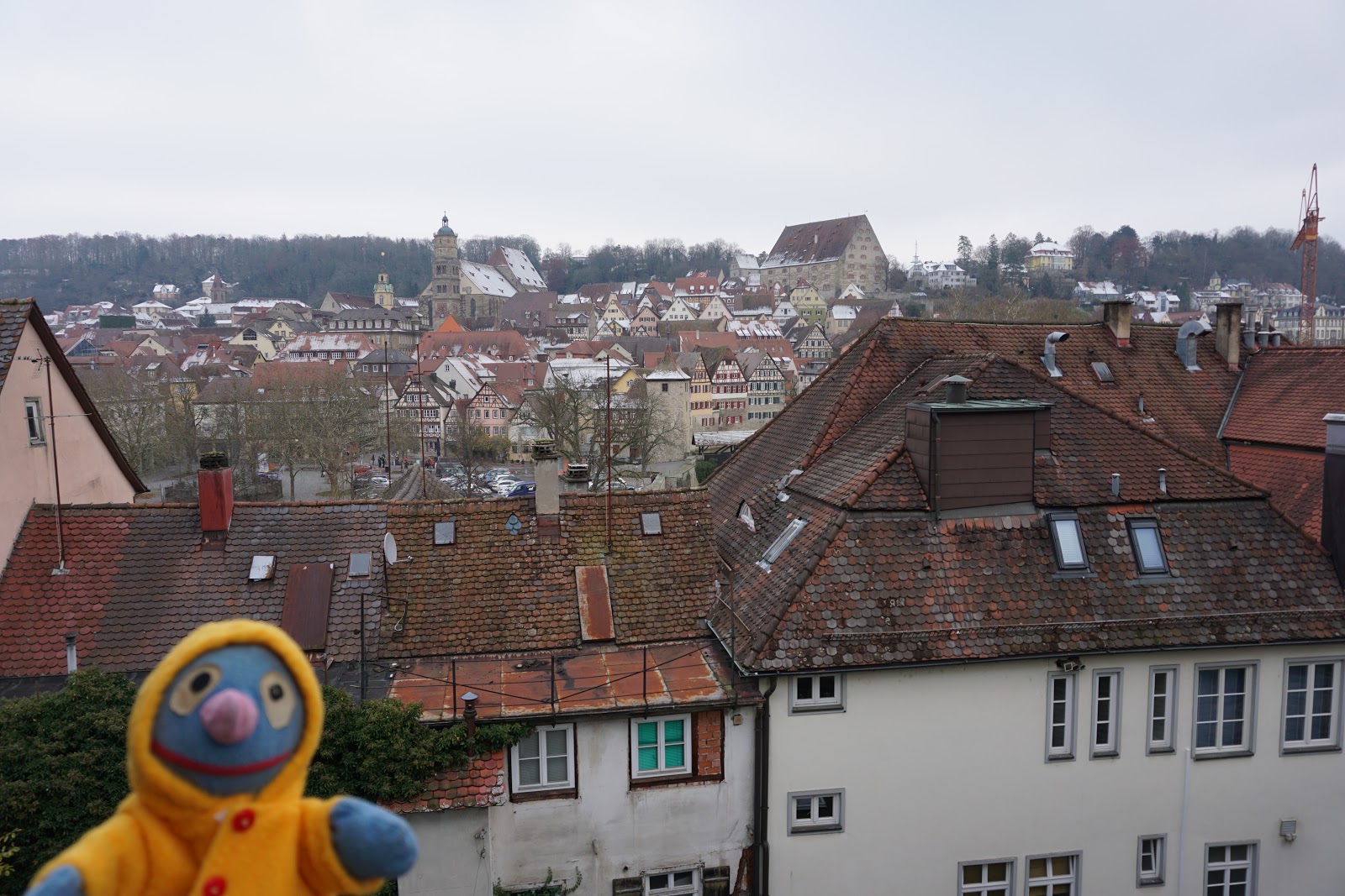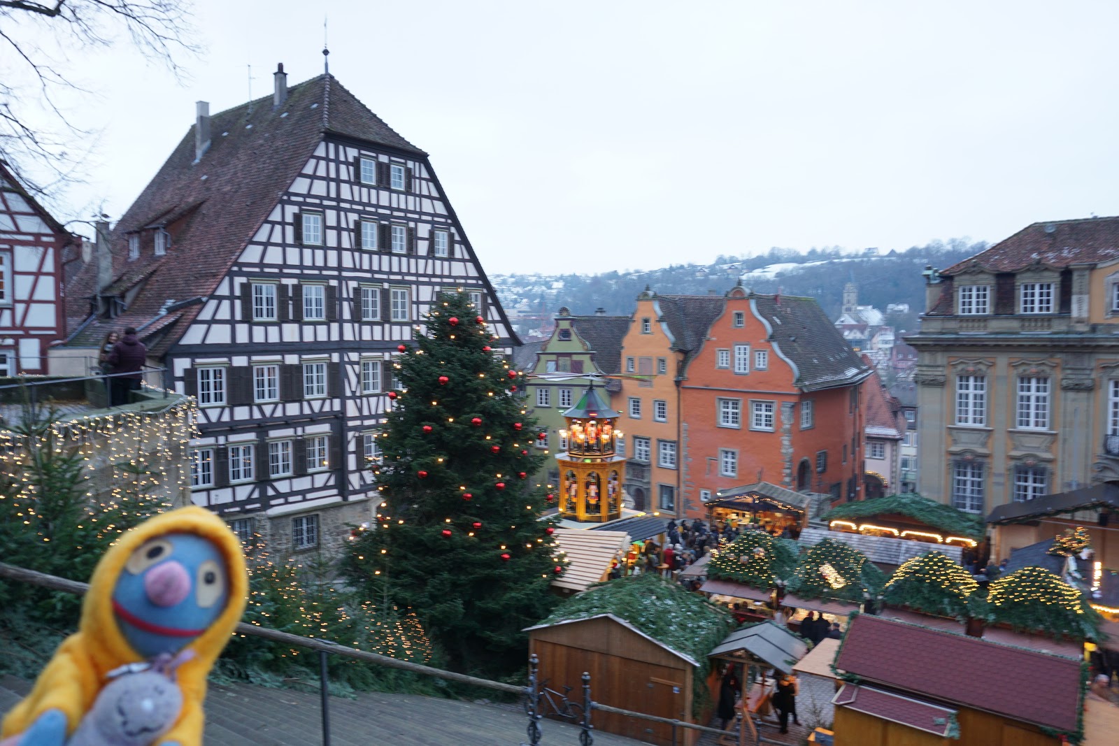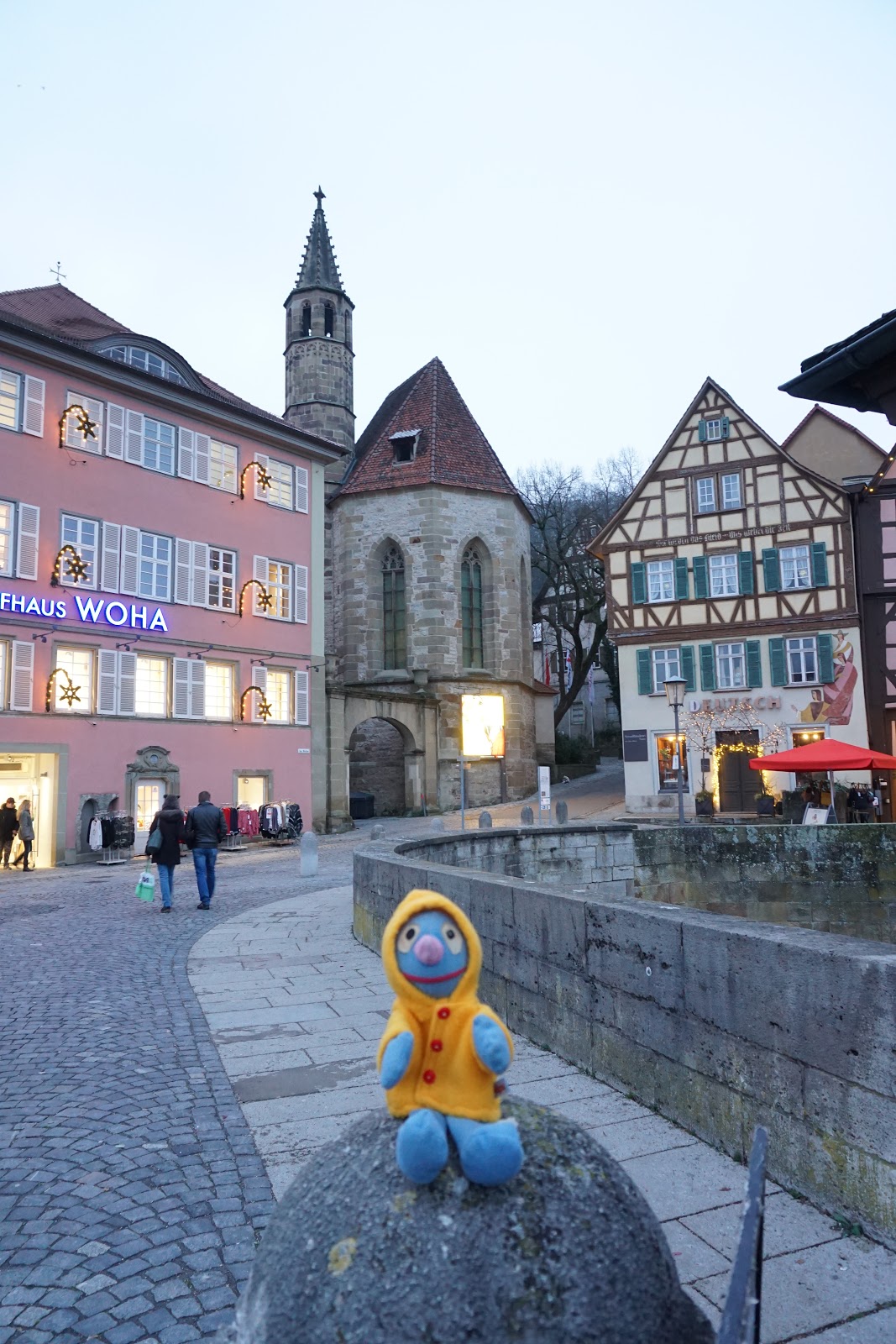 Ihr fragt euch sicher, was uns ausgerechnet an diesen Ort verschlagen hat, der ja nun nicht unbedingt für seinen Weihnachtsmarkt welt- oder zumindest mal deutschlandweit berühmt ist. Hintergrund war auch nicht der Weihnachtsmarkt, sondern der Live-Auftritt eines unserer Lieblings-Podcasts im Neubausaal in Schwäbisch-Hall. Dieser sollte an diesem Samstagabend stattfinden und wir waren alle schon ganz aufgeregt. Zunächst kamen wir um kurz nach der Mittagszeit im leicht verschneiten Schwäbisch-Hall an.