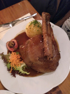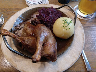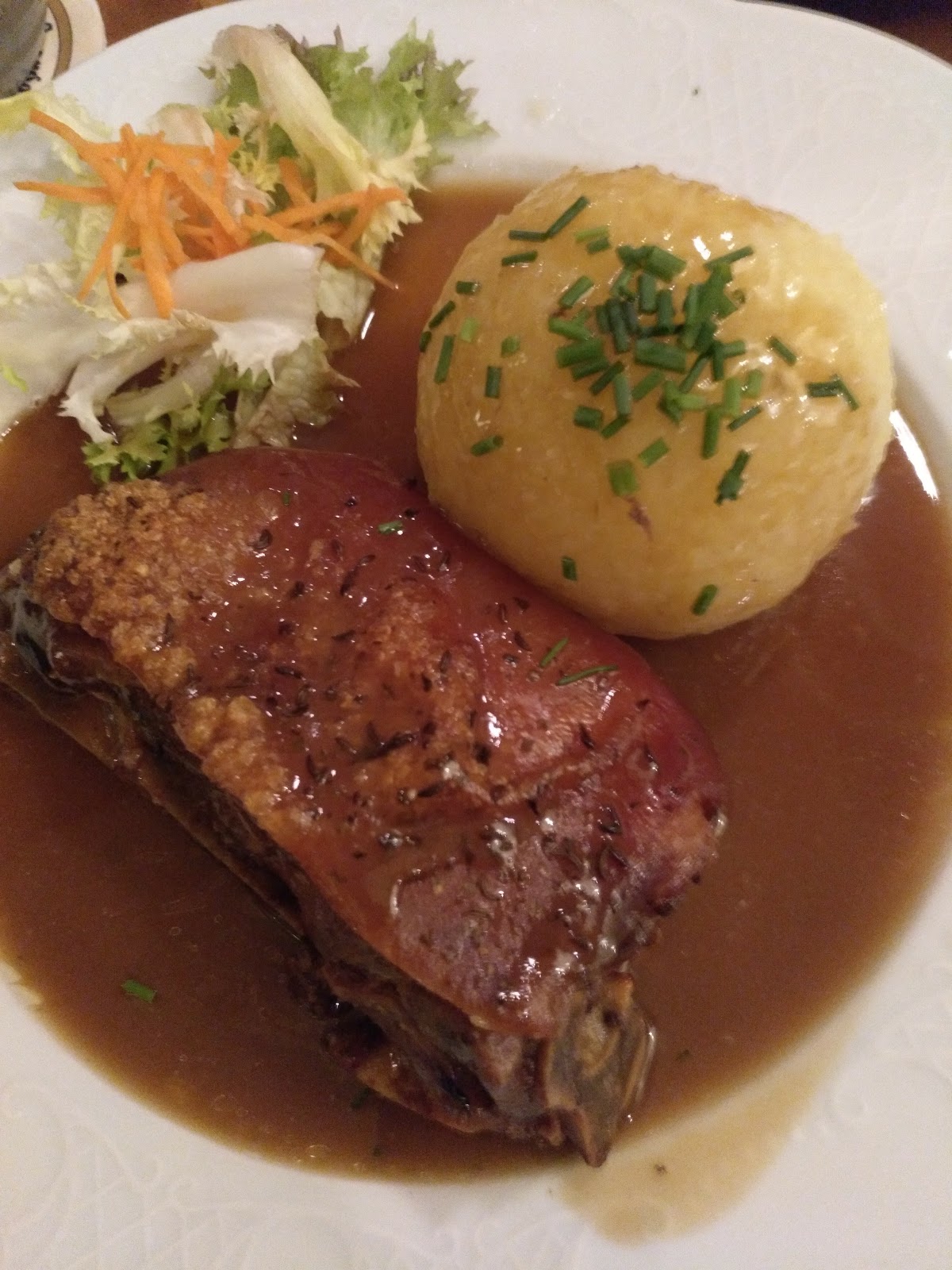 Danach meldete sich der Hunger und Schatzi-Moppel begannen, nach einer Abendessensmöglichkeit abseits des Weihnachtsmarkts zu suchen. Das war gar nicht so leicht, denn es war nahezu überall alles voll. Schließlich fanden sie einen kleinen Tisch in einer urigen Gaststätte und besetzten diesen. Das Essen konnte sich sehen lassen und das Kellerbier war offensichtlich auch ganz lecker.
