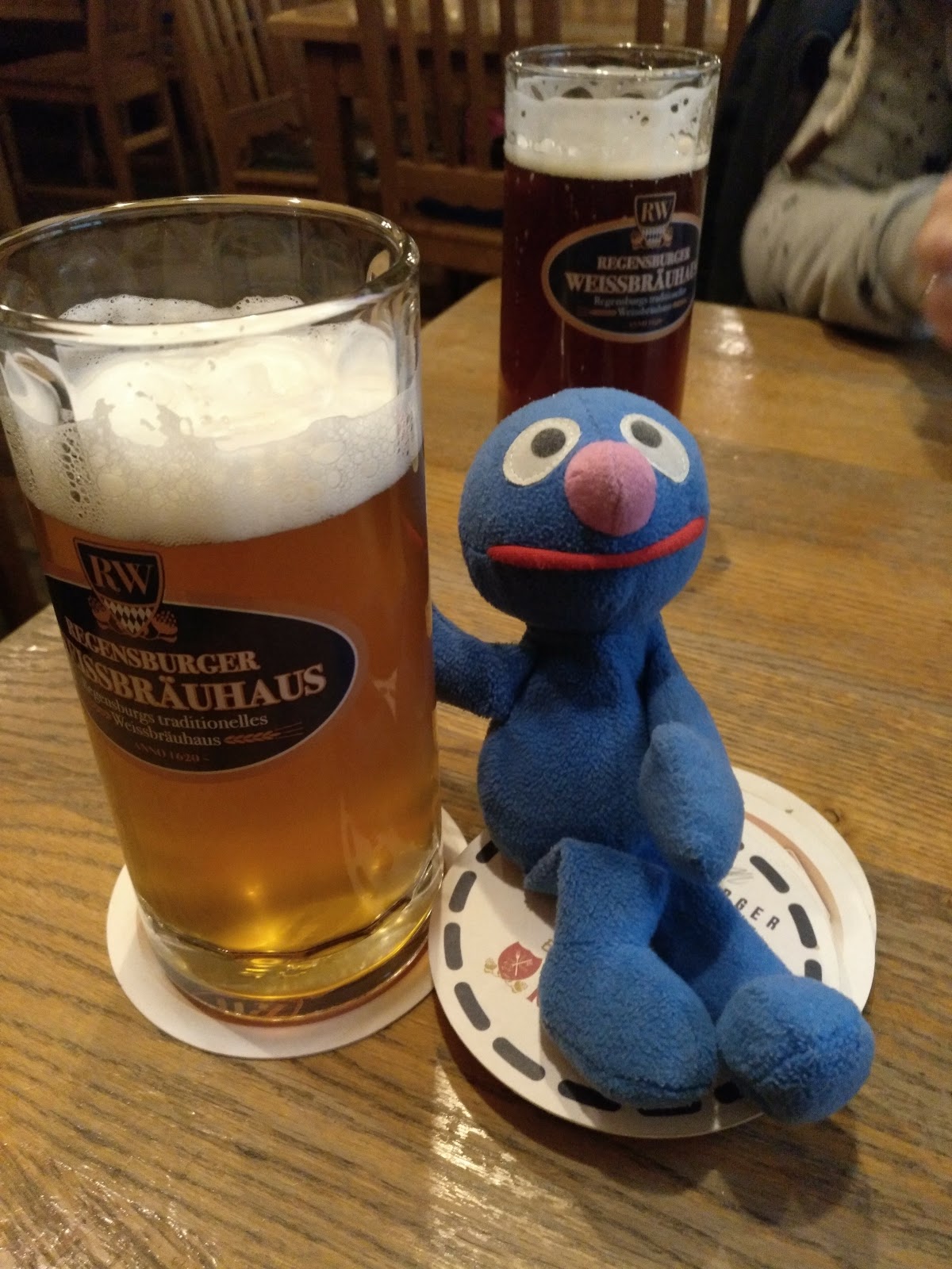 In Regensburg sind wir fast direkt erstmal in ein Brauhaus eingekehrt, damit Schatzi-Moppel mittagessen konnten. Die waren nämlich (wie immer) schon wieder am verhungern. Das Essen sah allerdings sehr lecker aus und das Bier hat Fischi auch sehr gut gefallen.