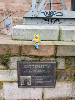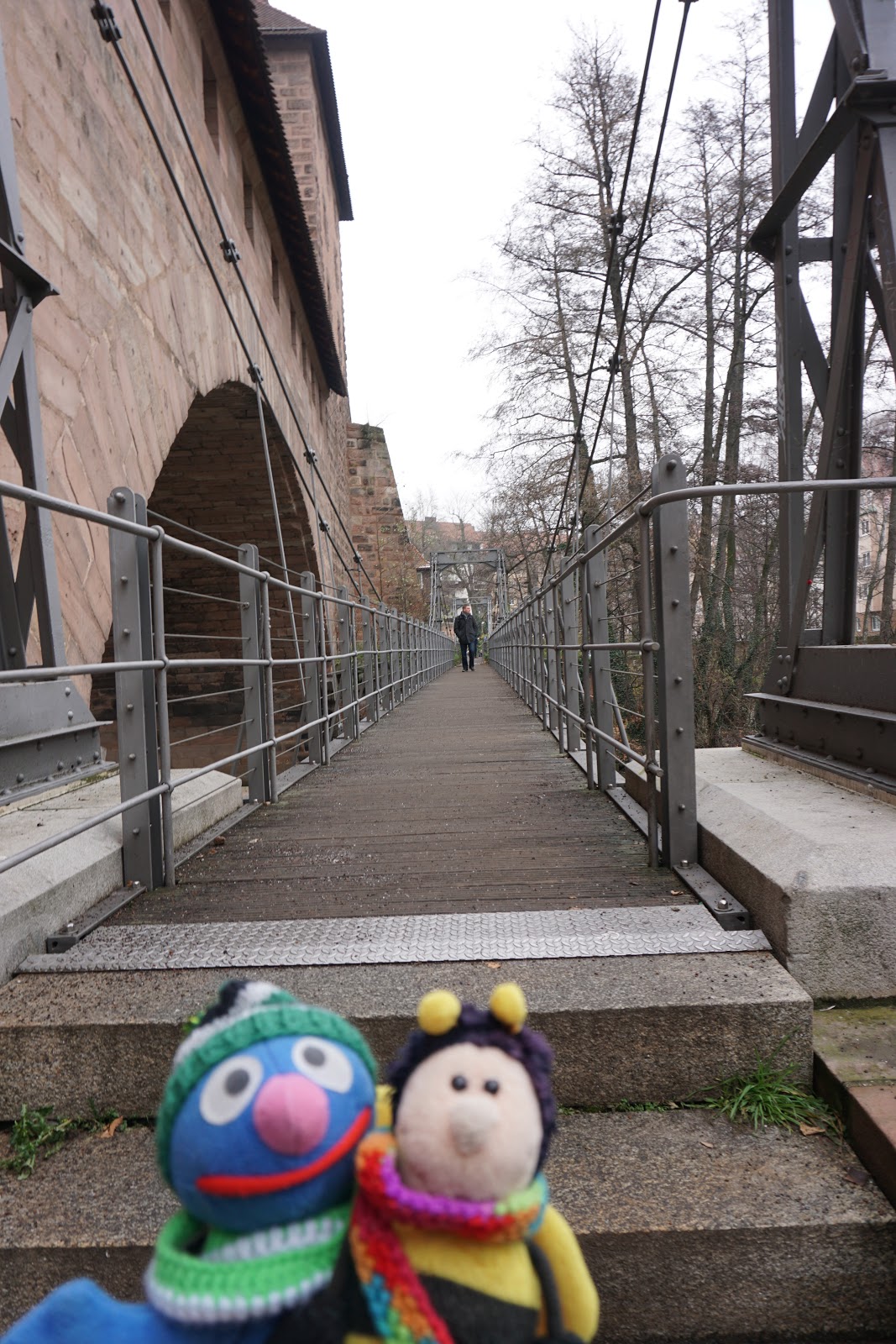 Nach dem Frühstück haben wir am nächsten Morgen noch eine kleine Runde um die Stadtmauer gedreht, die uns am Abend vorher so gut gefallen hatte. Dabei haben wir auch die älteste deutsche Hängebrücke überquert und noch ein paar Fotos von der Pegnitz gemacht.