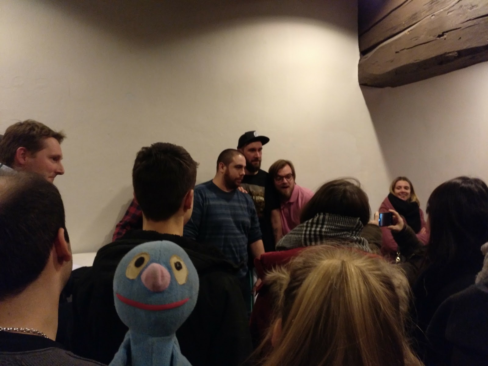 Am Ende des Abends, der leider viel zu schnell herumging, waren die drei noch draußen und haben Fotos mit den Fans gemacht, selbstverständlich auch mit mir. Herm hat sich dabei besonders gefreut und mich mit \“Oh, ein Grobi!\“ begrüßt. Ich habe mit \“Oh, ein Herm!\“ geantwortet, aber er war zu vertieft in das Foto, das wir zusammen gemacht haben. Was für ein Ereignis in meinem Leben!