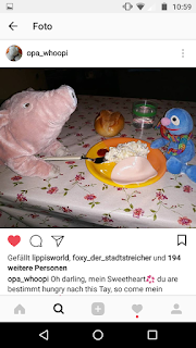 Trotz allem ging es natürlich ganz züchtig zu, das hat uns Willy versichert. Er war total happy mit seinem Schinkenschnüpchen und wurde ganz hervorragend umsorgt. Lady Sophie hat ihn zugedeckt und sich ganz rührend um ihn gekümmert, damit er kein Heimweh hat. Gemeinsam mit den anderen haben sie gebacken, Weihnachtsmärkte besucht und den Schwestern im Kloster geholfen. Es war sehr süß anzusehen, was Willy dort alles erlebt hat. Nachfolgend seht ihr noch ein paar weitere Bilder aus dieser Zeit von Opa Whoopis Account.