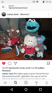 Am 30.12.2017 fuhren wir gegen Mittag mit dem Zug nach Frankfurt. Dort waren wir mit Plüschi-Freunden von Instagram verabredet. Wir wollten uns am Hauptbahnhof treffen und waren alle ganz schön aufgeregt. Das Besondere war nämlich, dass wir nicht irgendwen getroffen haben (wobei unsere Freunde alle total toll sind und wir uns über jeden bei diesem Treffen gefreut hätten), aber bei diesem Treffen war Willy dabei. Ihr erinnert euch ja noch an Willy, Grobi Nr. 4, der gerade auf Reisen ist. Inzwischen ist er an seiner dritten Station in der Nähe von Frankfurt angekommen.