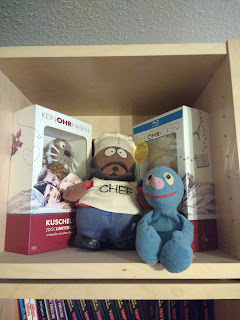 Den Rest des Tages haben wir Plüschis recht entspannt verbracht, denn die Menschen mussten noch einkaufen, Neuigkeiten austauschen und sich von den Strapazen erholen. Wir haben es uns also im Bücherregal gemütlich gemacht und uns mit Chefkoch unterhalten. Ralfi war irgendwie noch nicht zu sehen.