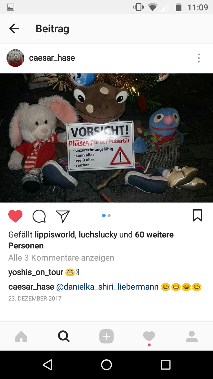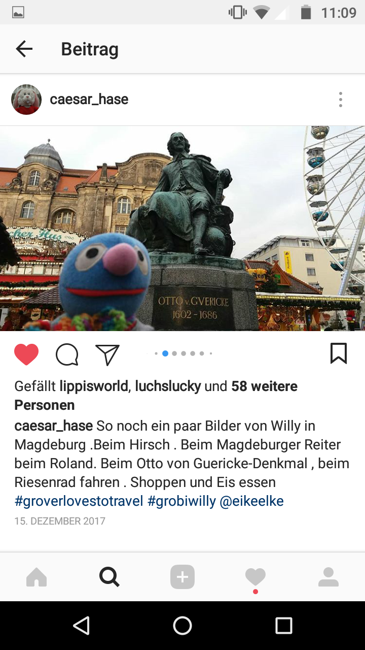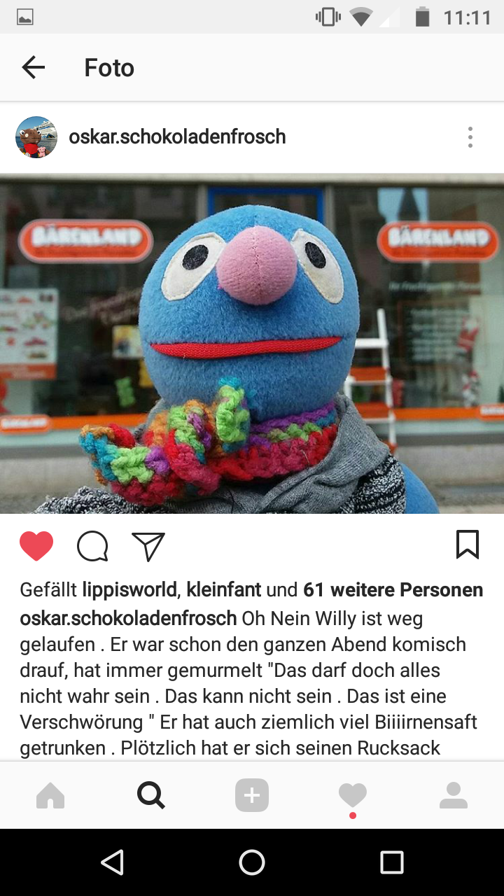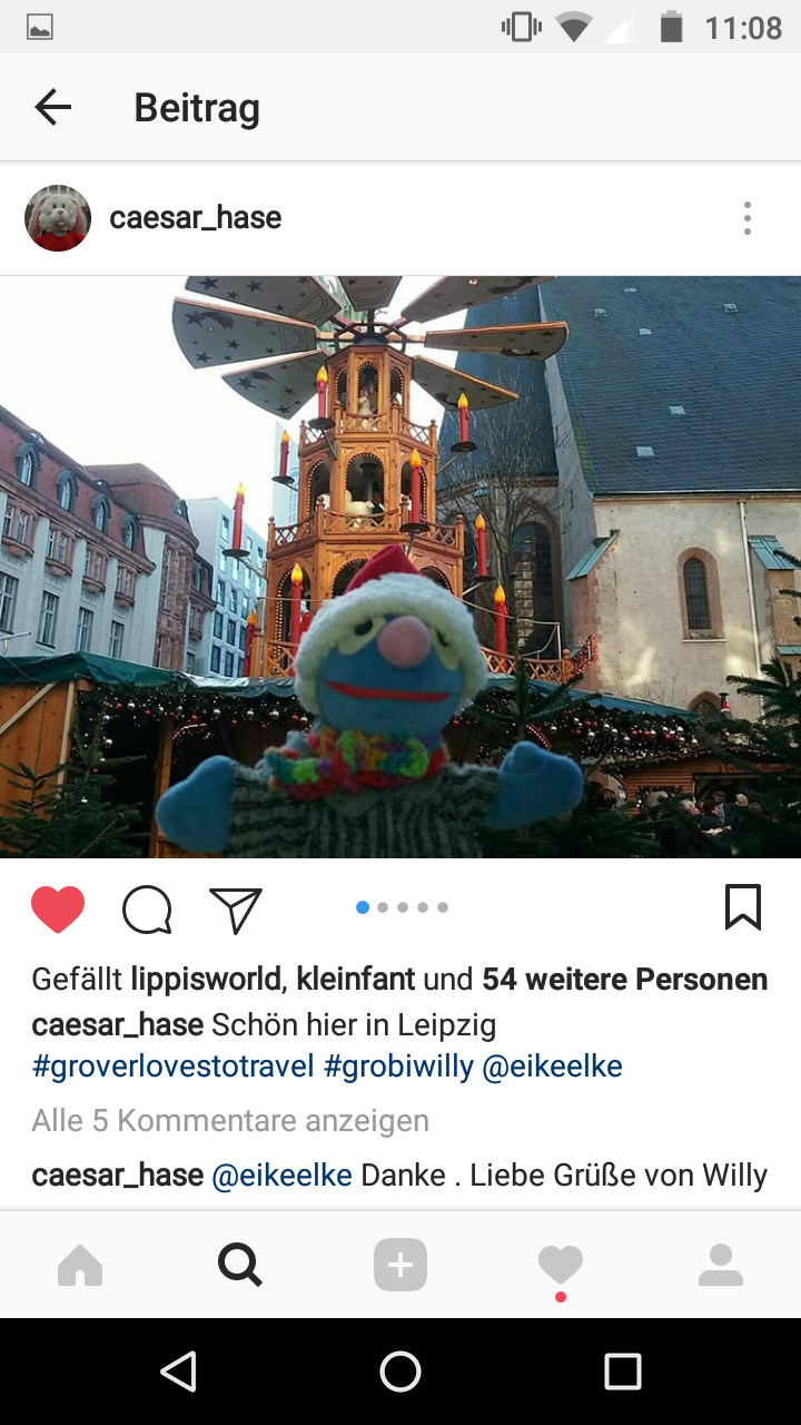 Am 30.12.2017 fuhren wir gegen Mittag mit dem Zug nach Frankfurt. Dort waren wir mit Plüschi-Freunden von Instagram verabredet. Wir wollten uns am Hauptbahnhof treffen und waren alle ganz schön aufgeregt. Das Besondere war nämlich, dass wir nicht irgendwen getroffen haben (wobei unsere Freunde alle total toll sind und wir uns über jeden bei diesem Treffen gefreut hätten), aber bei diesem Treffen war Willy dabei. Ihr erinnert euch ja noch an Willy, Grobi Nr. 4, der gerade auf Reisen ist. Inzwischen ist er an seiner dritten Station in der Nähe von Frankfurt angekommen.