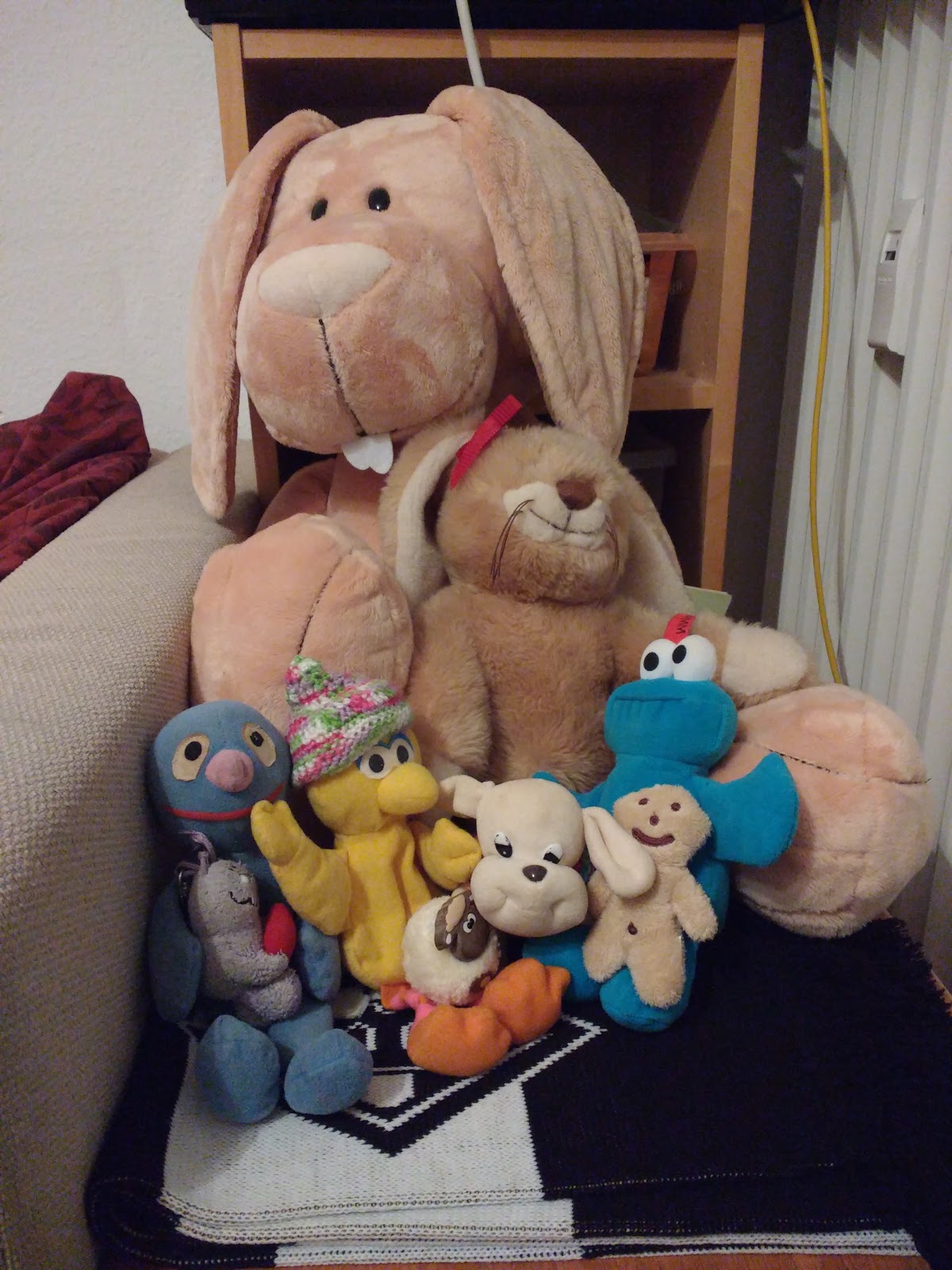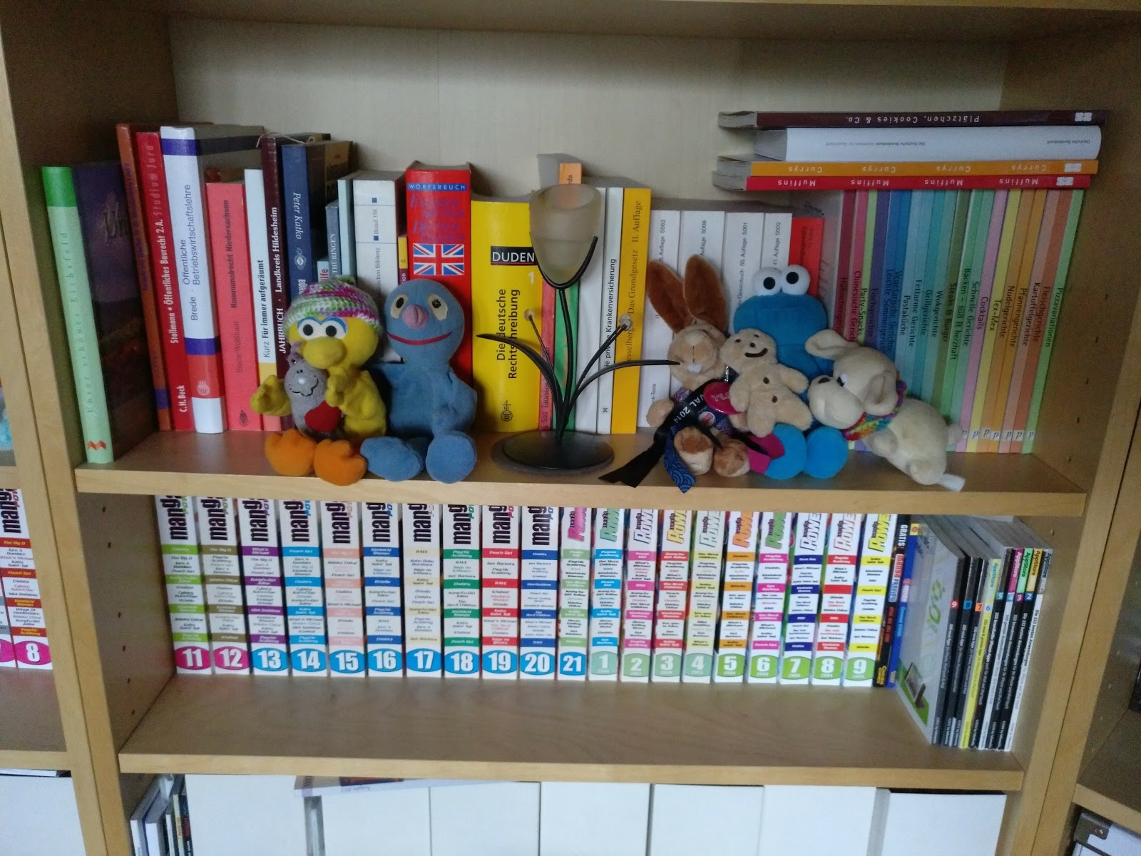 Den Rest des Tages haben wir Plüschis recht entspannt verbracht, denn die Menschen mussten noch einkaufen, Neuigkeiten austauschen und sich von den Strapazen erholen. Wir haben es uns also im Bücherregal gemütlich gemacht und uns mit Chefkoch unterhalten. Ralfi war irgendwie noch nicht zu sehen.