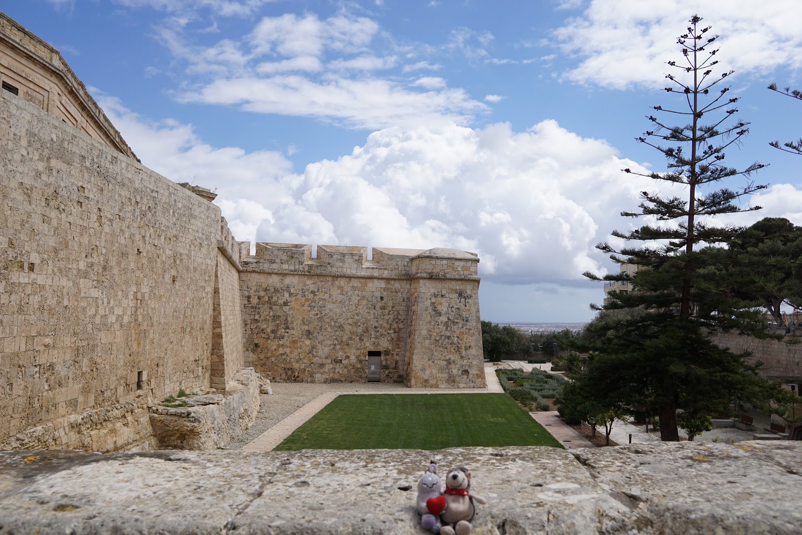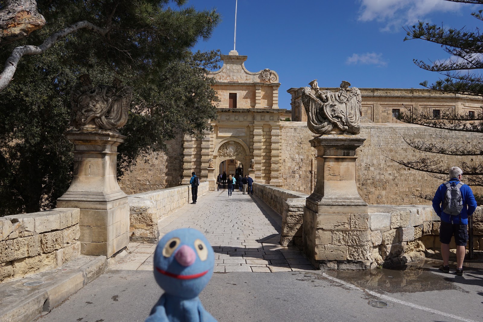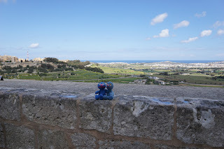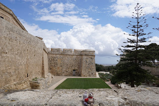 Heute morgen mussten wir nach dem Frühstück unser Luxushotel verlassen und uns mit dem Mietwagen weiter bewegen. Hierfür wurde zunächst alles verpackt, verstaut und Mdina angesteuert. Die Fahrt war wieder recht anstrengend, aber es hilft ja nichts. Mdina jedenfalls ist ein alter Ort mit verschlungenen Gassen und uralten Gemäuern. Nachdem wir nach einiger Sucherei endlich einen Parkplatz gefunden hatten, haben wir zunächst im Außenbereich ein paar Fotos gemacht.